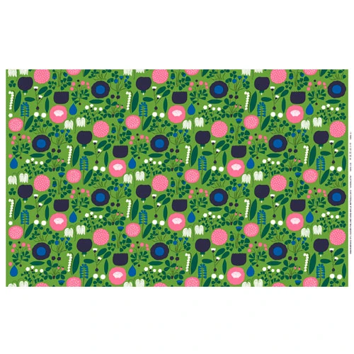 Bring the freshness of a summer field into your home with the Marimekko Ahonlaita Green Fabric. Inspired by the blossoms that line the edge of meadows, Aino-Maija Metsola interprets her vision into the Ahonlaita pattern. Pops of pink, purple, white and navy wild flowers blanket a green background. Swap out your cool winter tones for this vibrant, summery fabric that is perfect for your home or wardrobe.