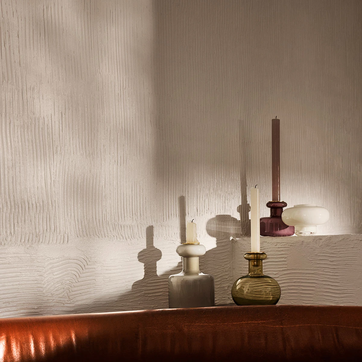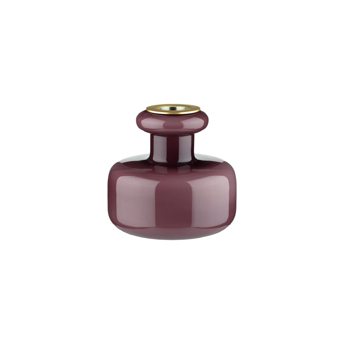 Carina Seth Andersson designed this Puteli Candleholder in dark wine. Austere and simplistic, this candle holder looks wonderful in nearly any setting but is striking enough to sit as a centerpiece on its own. It is made from mouth-blown glass, and when the metal top is removed, it can be used as a small vase.