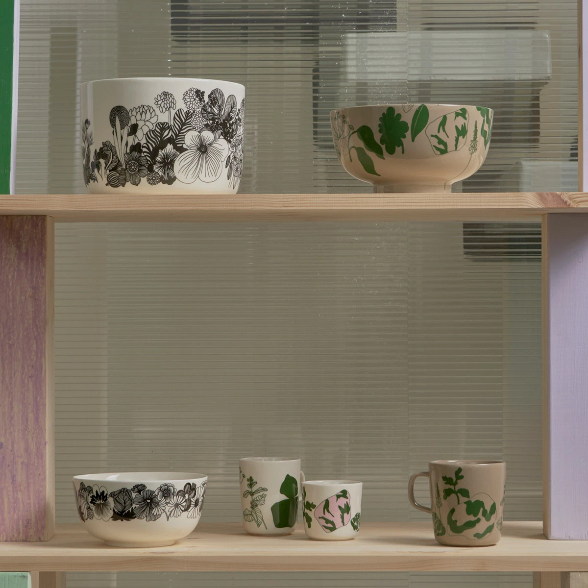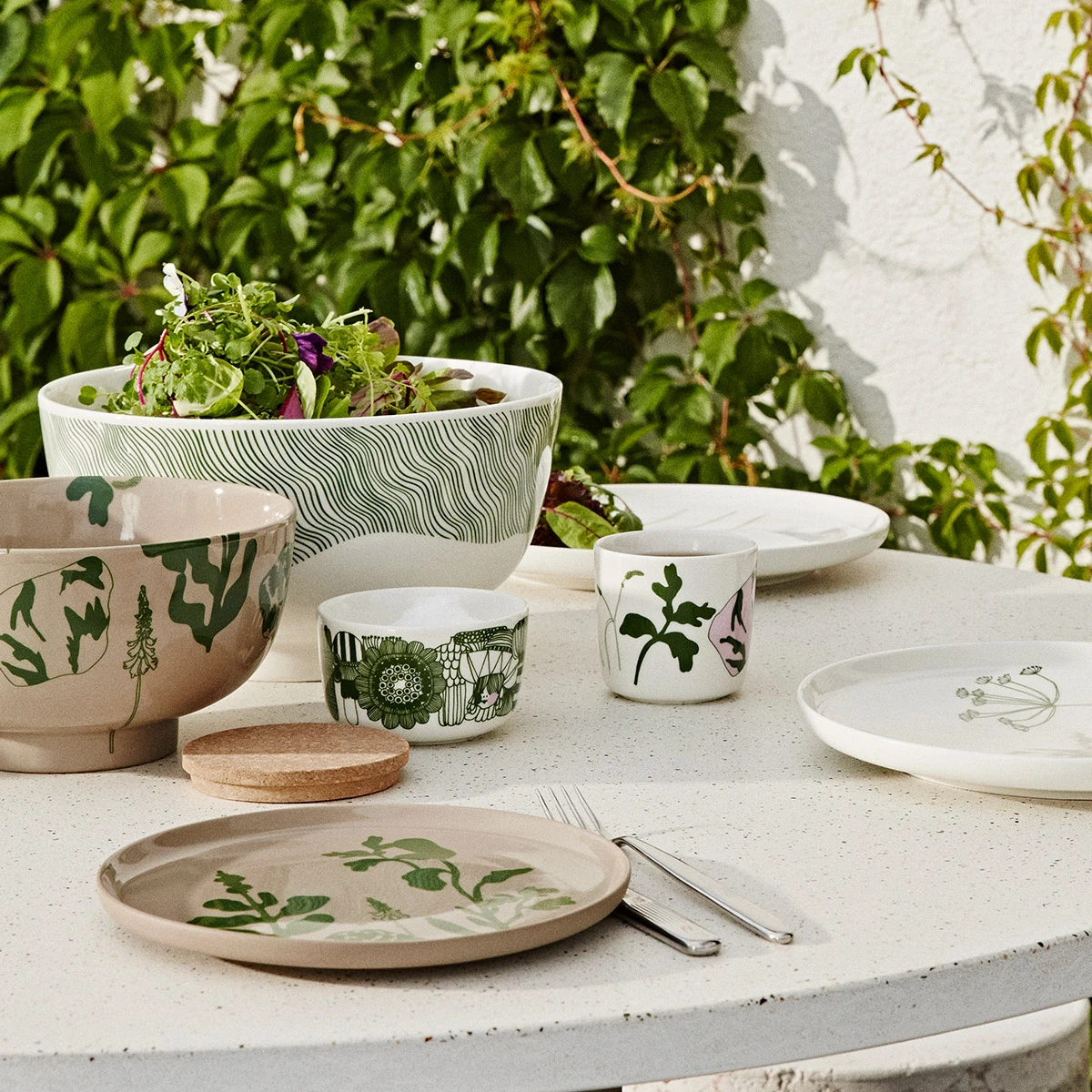 This salad bowl features the Elokuun Varjot (August shadows) print designed by Maija Louekari whom drew inspiration from her very own garden at home. The designer was fascinated by the changing seasons of the North – the new beginnings and the abundant growth that follows, year after year. This pattern design is an ode to greenery, freedom, and warm winds. The combination of earthy brown and rich green create a pattern that feels fresh and inviting. Use this bowl for pastas, salads, fruit, or vegetables in order to elevate your dining experience for the better.