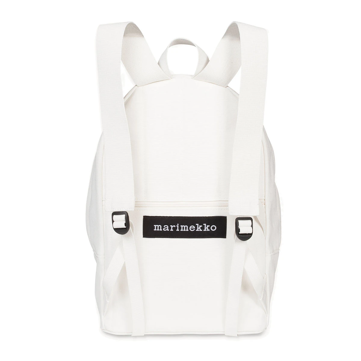 Backpacks have enjoyed a recent resurgence for their convenient carry and youthful feel, but Marimekko the classic sillhouette has always been a mainstay for Marimekko. This zip top backpack is made from cotton canvas in a crisp white color. Adjustable shoulder straps and a padded back slot pocket ensure comfort for every wearer. Interior and exterior zip pockets provide a spot for your things big and small, from weekend trip to daily errands. The back exterior proudly sports a sewn Marimekko logo label.