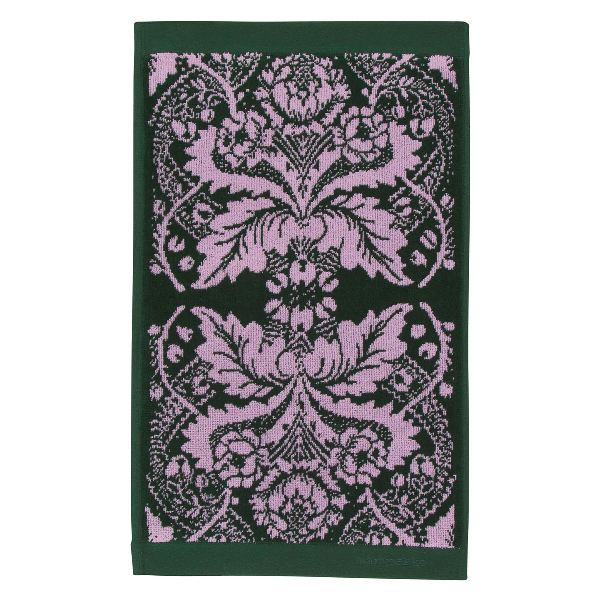 It’s the details that can turn an ordinary bath into a luxurious one. This Marimekko bath towel has a soft velour finish on the front, but keeps the cotton terry on the back for maximum absorbency. It features vintage 1962 Fandango pattern in dark green and lavender, with the colorway reversed on the opposite side. Designer Maija Isola had a wonderful way of merging ornate, traditional design with a modern, bold twist and this print is a lasting example. This guest towel is *almost* too pretty to use, but don’t fret – the 100% cotton will machine wash beautifully to keep it as practical as it is beautiful for years to come.