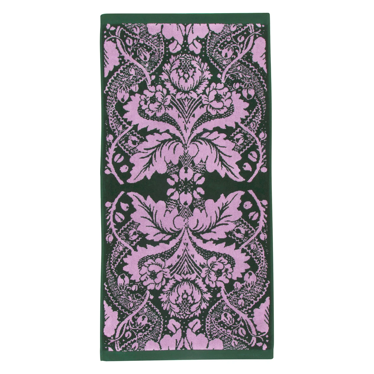 It’s the details that can turn an ordinary bath into a luxurious one. This Marimekko bath towel has a soft velour finish on the front, but keeps the cotton terry on the back for maximum absorbency. It features vintage 1962 Fandango pattern in dark green and lavender, with the colorway reversed on the opposite side. Designer Maija Isola had a wonderful way of merging ornate, traditional design with a modern, bold twist and this print is a lasting example. This hand towel is *almost* too pretty to use, but don’t fret – the 100% cotton will machine wash beautifully to keep it as practical as it is beautiful for years to come.