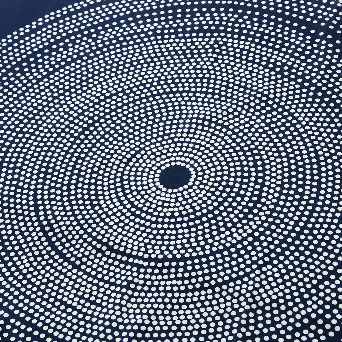 A Marimekko Fokus Shower Curtain will be the focus of your bedroom with its eye-catching, large-scale design by Anna Danielsson. Tiny white dots form concentric circles atop a navy background for a simple yet striking visual that brings a sense of zen to the bathroom. The shower curtain has quality constructed value holes to easily be hung from your favorite hooks. Made from 100% cotton, it’s best paired with a liner (not included) but is easily machine washable to be kept fresh and clean.