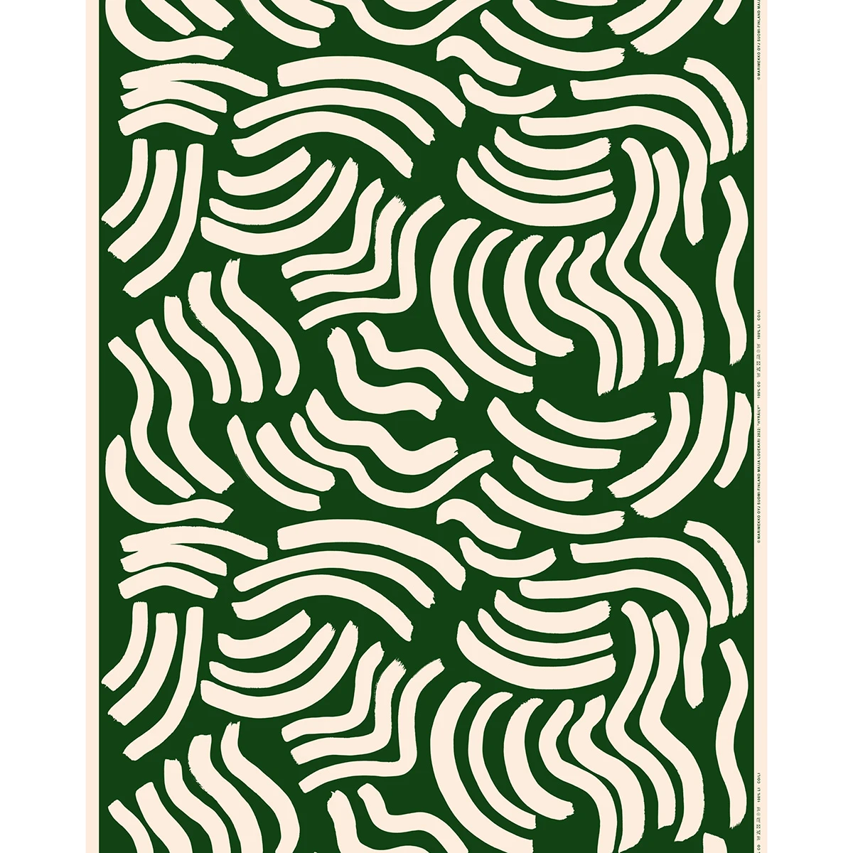 This 100% cotton panama fabric features Maija Louekari’s Hyräily (humming) pattern in shades of green and white, painted with relaxed, thick brush strokes to follow the rhythm of humming. According to Louekari, the hand-painted print represents the carefree beauty of everyday life, and that not everything is going to have straight lines. You can channel your own carefree beauty into your home décor crafts and fashion projects with this Hyräily print, made in Finland and machine washable when needed.