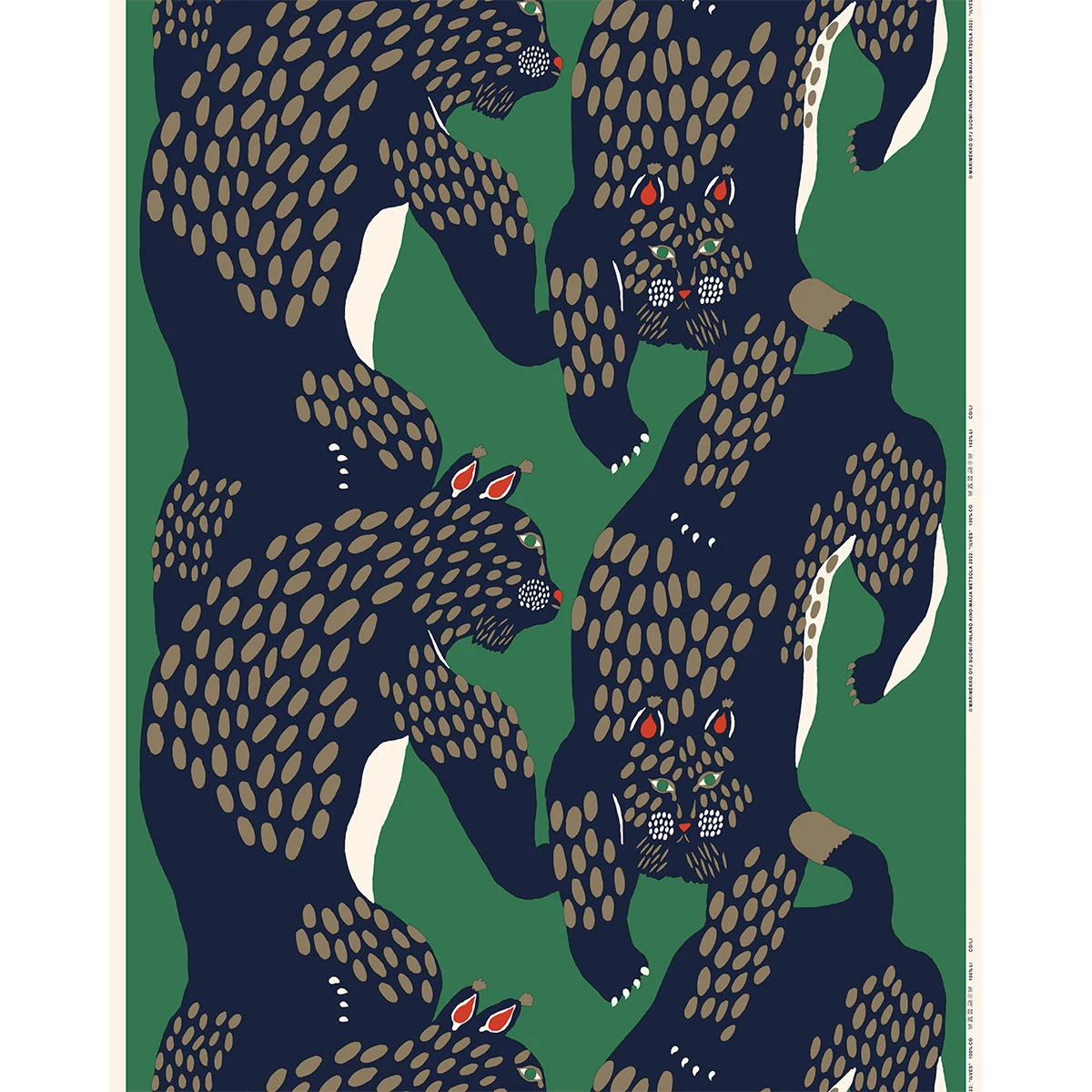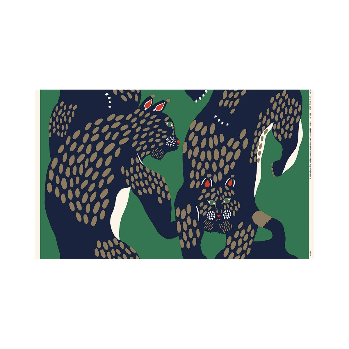 Painted onto paper with just a brush and ink, Aino-Maija Metsola created the captivating Ilves (bobcat) pattern that depicts two young bobcats prancing through the night. Inhabitants of the northern forests, the Ilves pattern continues Metsola’s tales of what lies beyond the Nordic trees. Create enchanting and eye-catching home decor or fashion pieces with this 100% cotton panama Marimekko fabric. It is made in Finland and machine washable when needed.