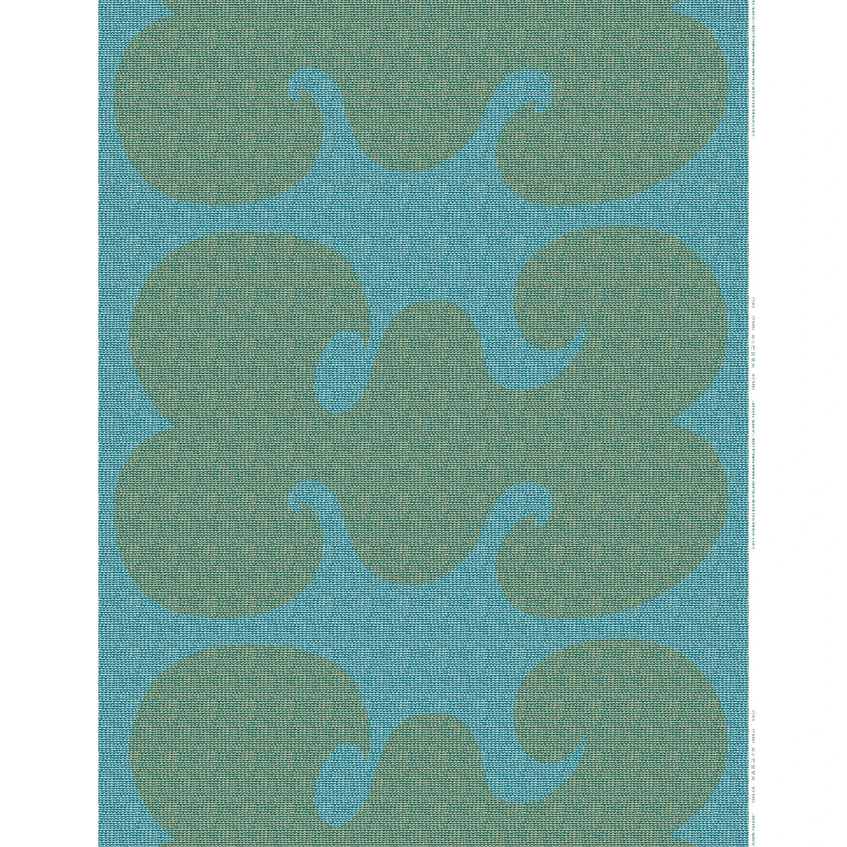 This eyecatching cotton fabric is printed in Helsinki and features the Jokeri Papajo pattern. This is a captivating combination of two patterns made in the 1960s by the amazingly talented, Annika Rimala. The contrast of beige and turquoise allows for the large scales design to compliment smaller preportioned ones. The Jokeri pattern was inspired by contemporary youth culture while the Papajo pattern came from the beauty of Maya civilization. By combining these two designs, Annika was able to create a unique pattern unlike anything else.