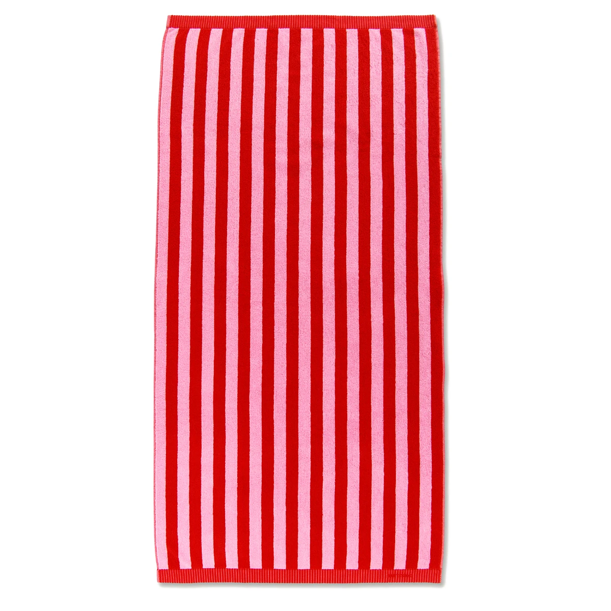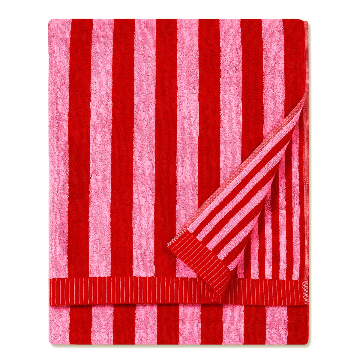 Start or end a long day with uplifting colors and comforting textures. Bright hues of pink and red stretch Maija Isola’s stripes adorn each side; wide Nimikko stripes on one side and thin Ujo stripes on the reverse side. Made from 100% cotton, the lengthy and fluffy bath towel is super soft and highly absorbent. It’s also lightweight enough to be fast-drying. Mix and match these stylish stripes with other towels for an eclectic linen closet, or build a cohesive collection in this fun and festive color scheme.
