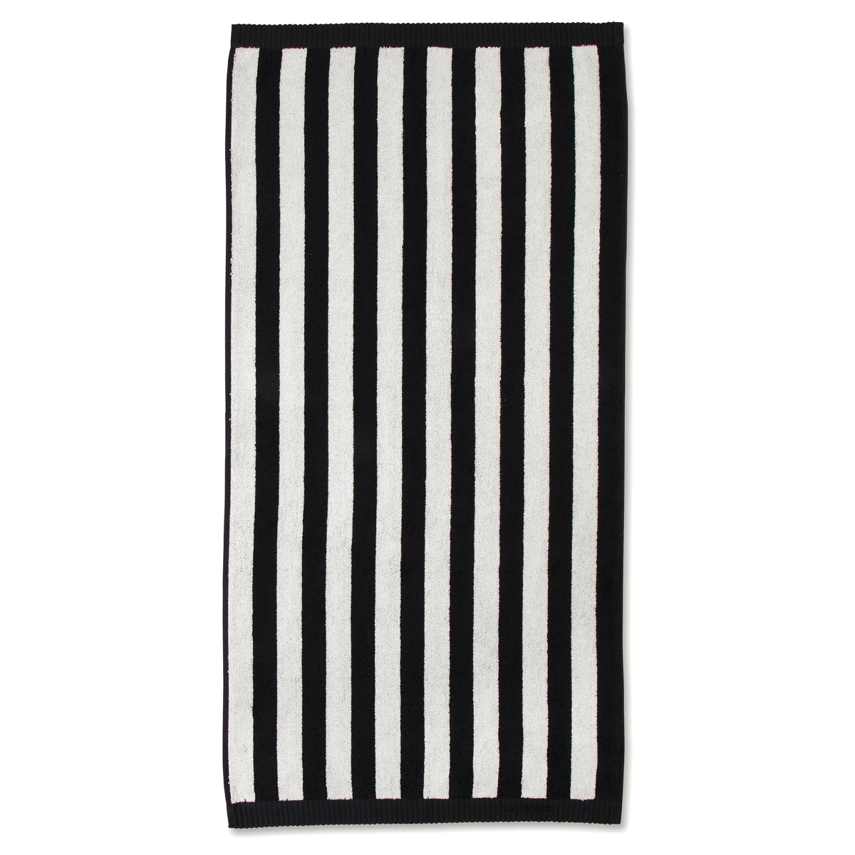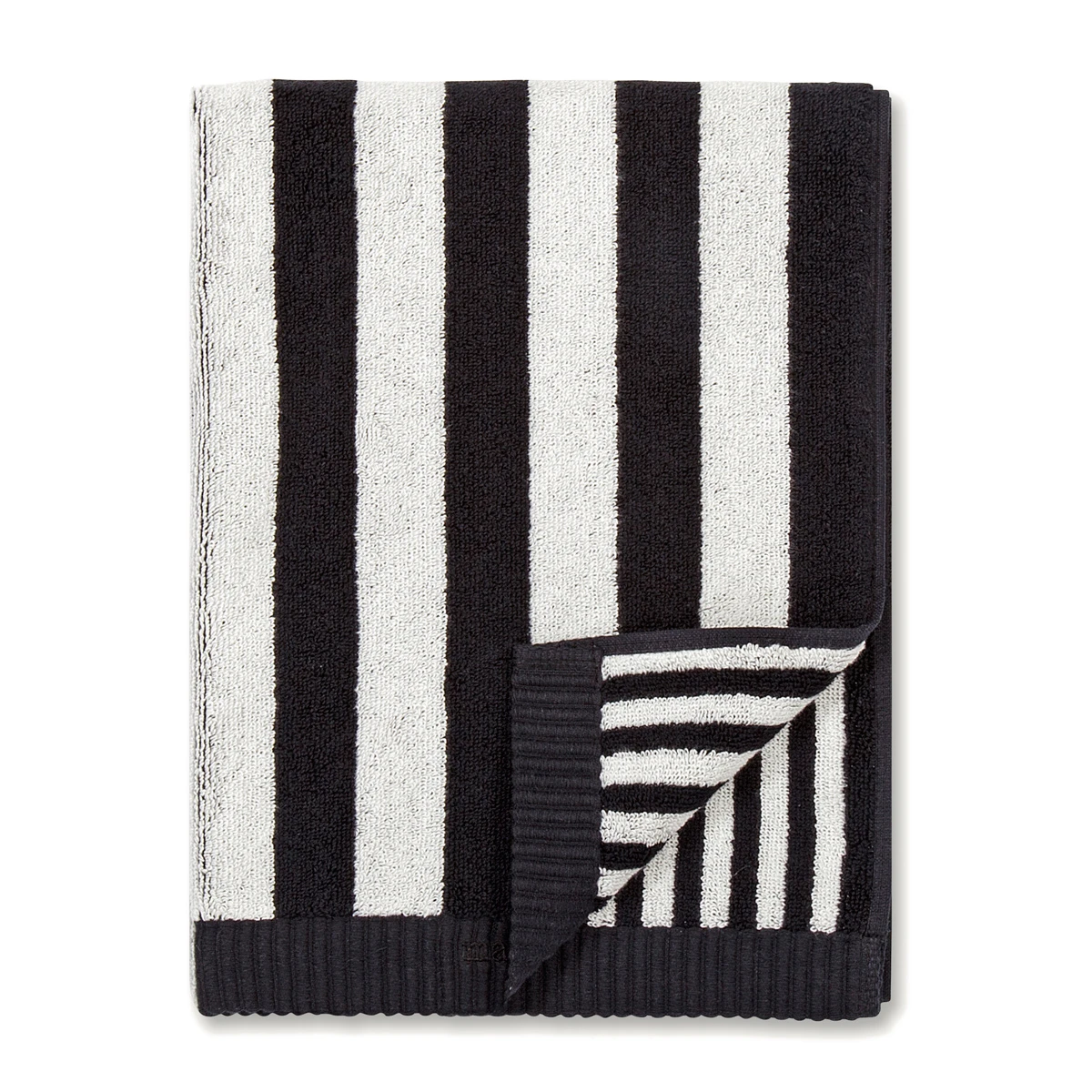 This Marimekko towel is as lovely to look at as it is to dry hands with. Maija Isola’s iconic stripes stretch across the lengthy towel; one side in the wide Nimikko stripe and the reverse side in the thin Ujo stripe. Made from 100% cotton, the soft and lightweight towel is quick-drying and highly absorbent. A classic black and white stripe can be combined with any other colors or prints for an eclectic collection of bath linens.