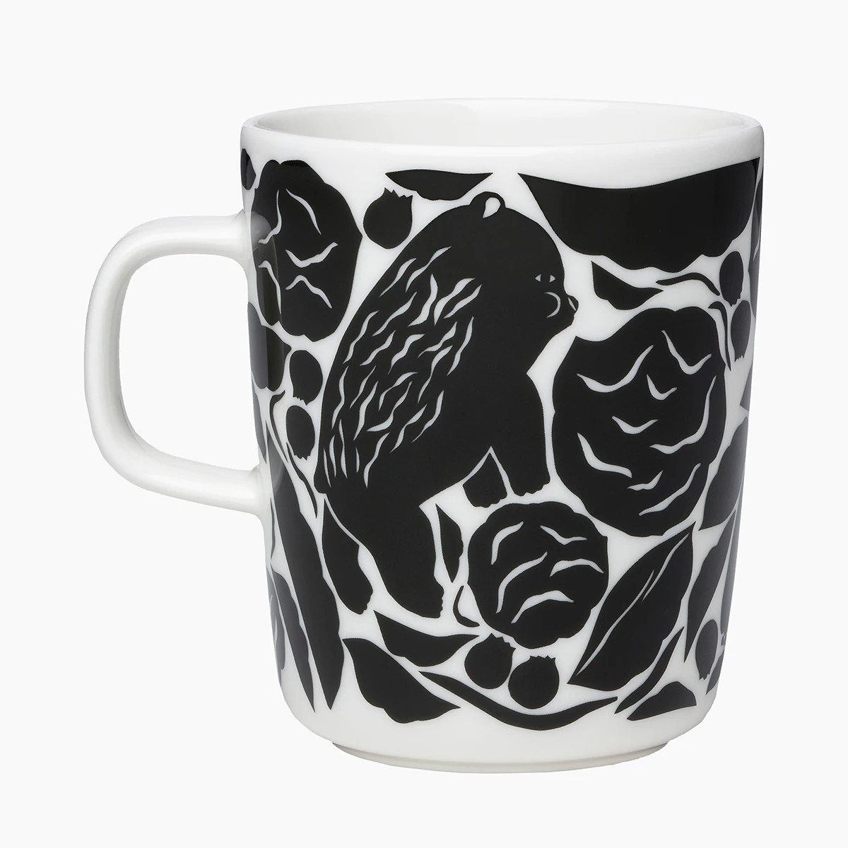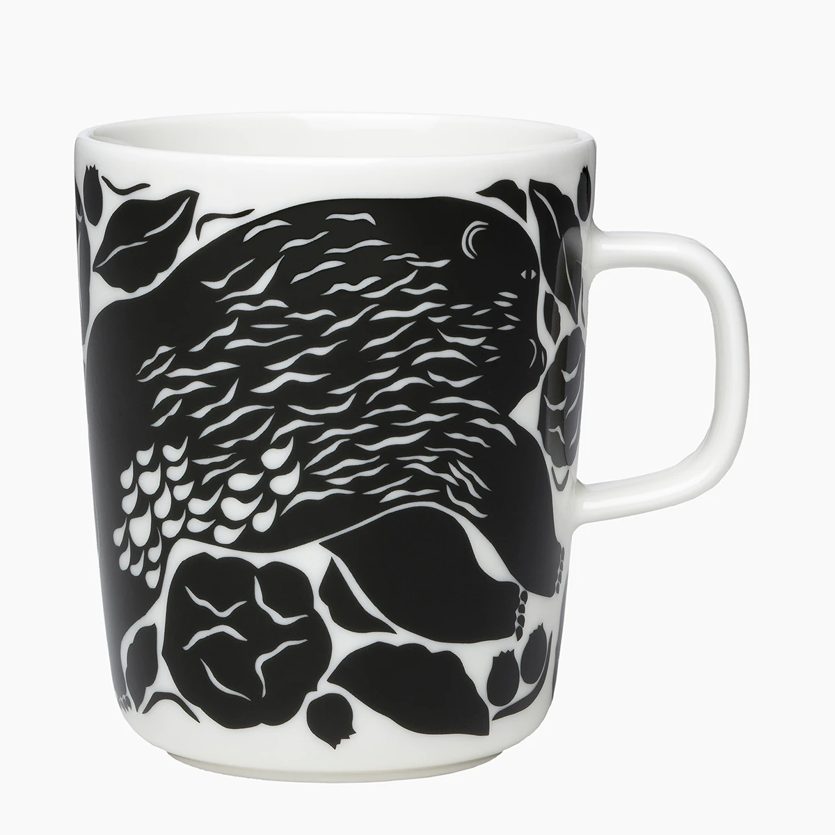Featuring a mama and baby bear in Finnish folkloric fashion, this pattern will bring beauty to your routine of morning coffee, afternoon tea, or evening hot cocoa. Called Karhuemo (Mother Bear), this Marimekko mug will get plenty of use, as the white stoneware is microwave, oven, freezer, and dishwasher safe for convenient everyday use. With a versatile size, this Marimekko Karhuemo Mug will quickly earn its place as your go-to mug and fit beautifully in an existing collection of Marimekko dinnerware.