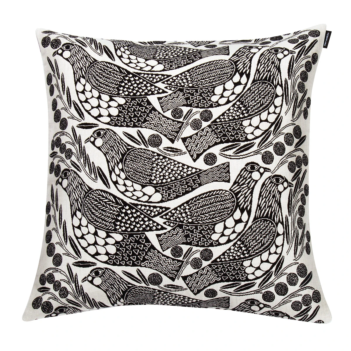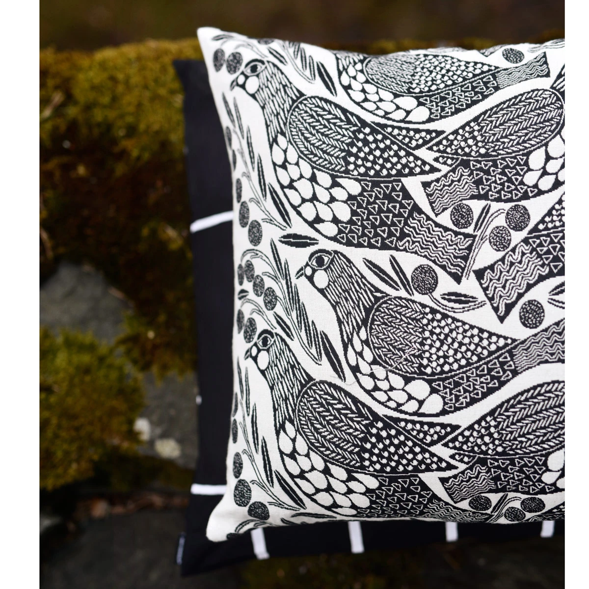 Whether you place your throw pillows on your sofa, bed or chair, make a bold statement with Aino-Maija Metsola’s Kiiruna pattern. The black and white Ptarmigan (Kiiruna) will add an accent to any room. For easy cleaning, simply remove the 100% cotton cover from the complimentary insert and wash in the machine.