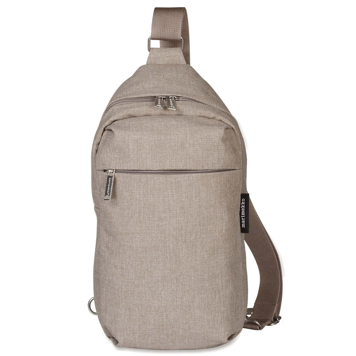 With the Marimekko Kortteli Crossbody Bag, you can tote your essentials around town in hands-free fashion. This bag is worn like a crossbody backpack, with an adjustable strap that can be unhooked, allowing you to decide which side you would like to wear it on. They beige exterior boasts a front zip pocket to keep important things within reach, as well as a hidden back pocket to protect your valuables. Inside the main compartment is a polyamide lining with two pockets, one with a zipper, to stow your stuff.
