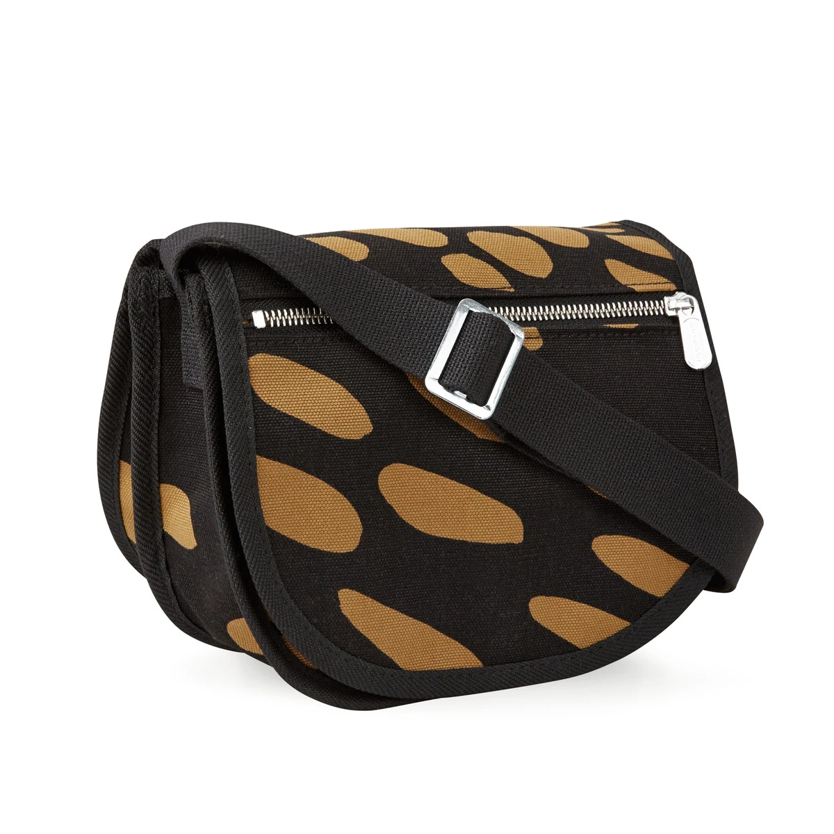 Be ready for a day of demands or leisure with the Marimekko Kerttu Shoulder Bag, adorned with Katsuji Wakisaka’s Kottarainen (Starling) pattern. The sturdy cotton canvas bag features reinforced seams to strongly tote all of your essentials. The interior is divided into one zippered area and one open area; the flap folds over them both, snapping on the front of the bag. The flap also has a zippered pocket, so wherever you tuck essentials, they’ll be close at hand and secure. Wear this petite and hardworking bag stylishly and comfortably thanks to the adjustable shoulder strap.