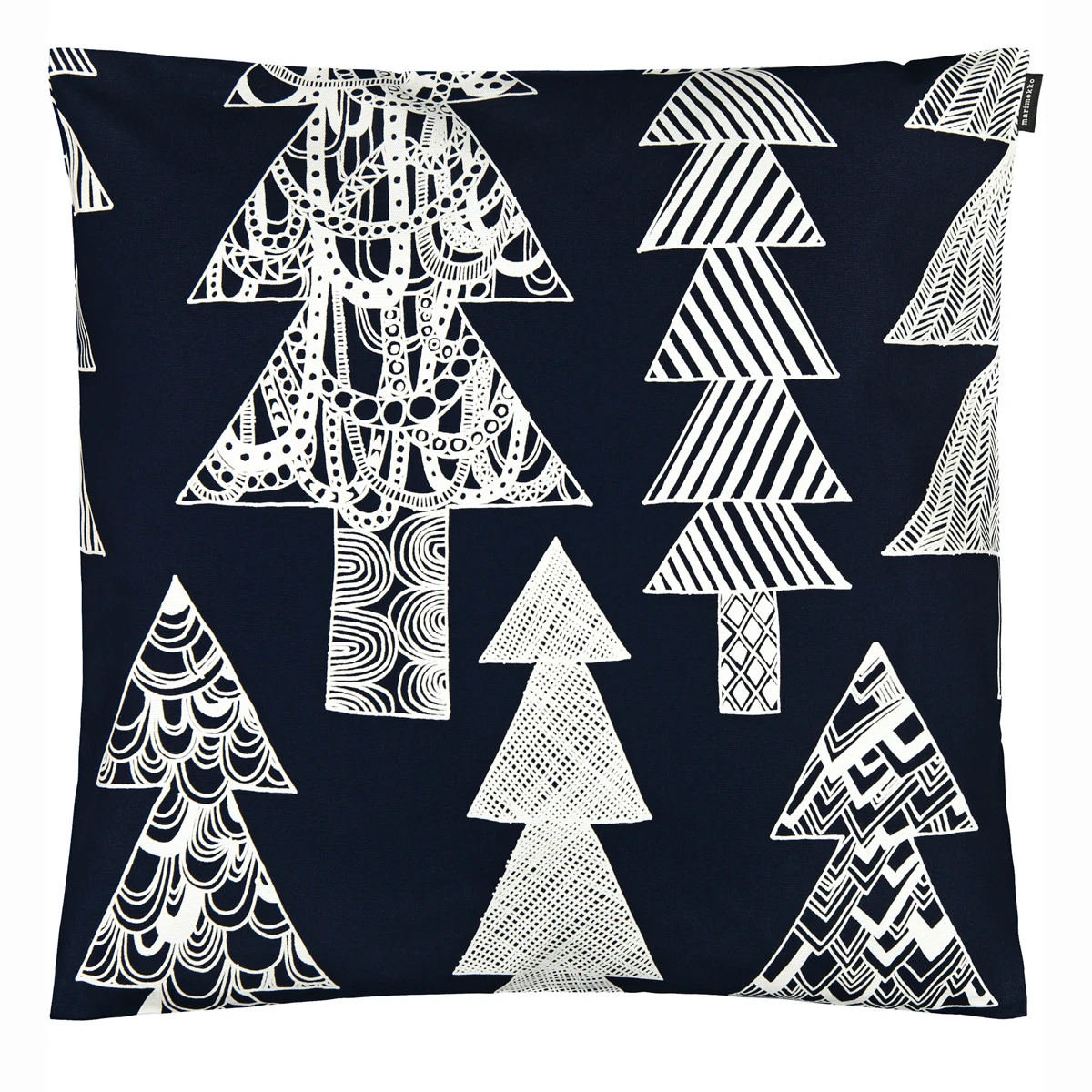 It’s never been easier to spruce up your home for the holidays. Designed by Maija Louekari, this festive print called “Spruce” was inspired by the thrilling hunt for the perfect Christmas tree. Each unique in size, shape, and pattern, white sketches of Christmas trees decorate this 100% panama cotton navy blue cushion cover. A discreet side zipper allows for it to be removed from an insert with ease for machine washing. The fabric feels slightly thicker than standard Marimekko cotton fabrics with a more canvas-like feel that that mimics the construction and durable texture of the Panama hat.