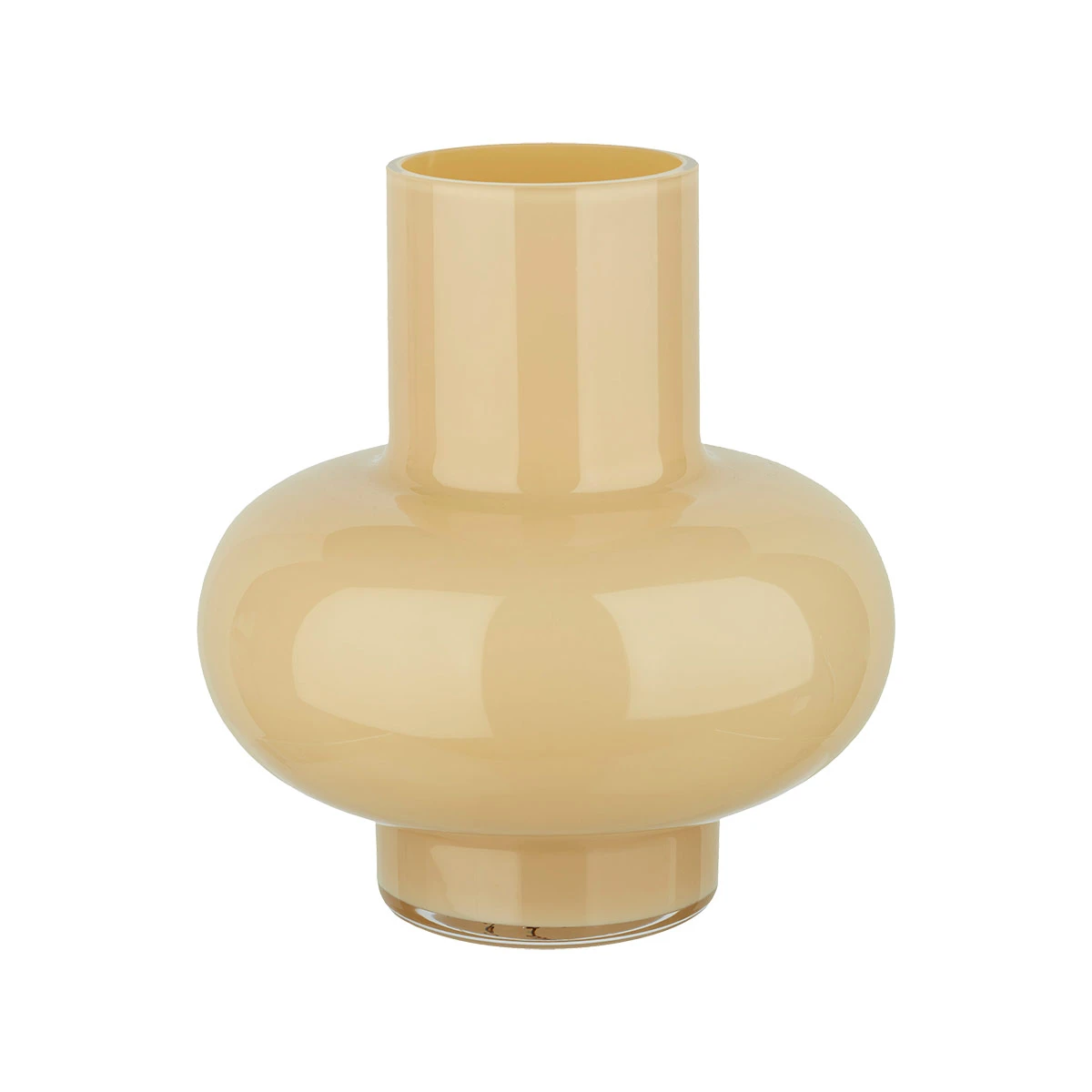 Designed by Carina Seth Andersson and crafted from mouth-blown glass, the Marimekko Umpu Beige Vase is a piece of functional art. Use it to hold fresh bouquets in spring and summer, evergreen branches in winter, or dried reeds in autumn. The timeless and modern shape makes it versatile for many types of arrangements, and even beautiful empty as a centerpiece.