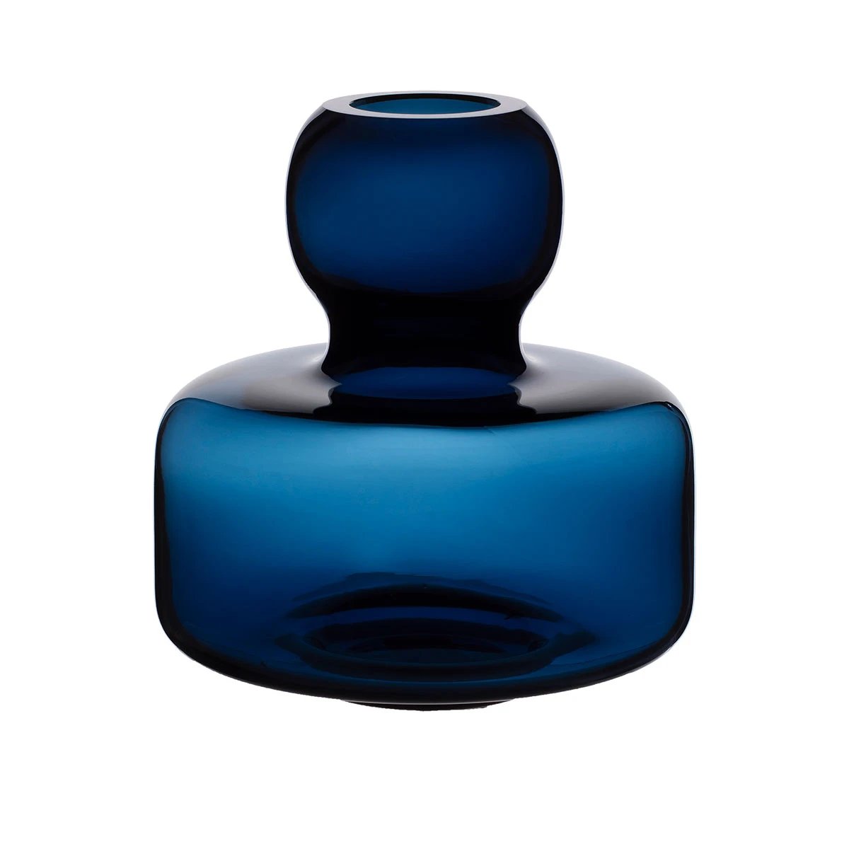 The Marimekko Midnight Blue Flower Vase gives a richness to minimalism. Choose a single stem or a dramatic leaf for this small, but significant vase. Clean-lined curves are formed from thick, opaque glass tinted a deep midnight blue.