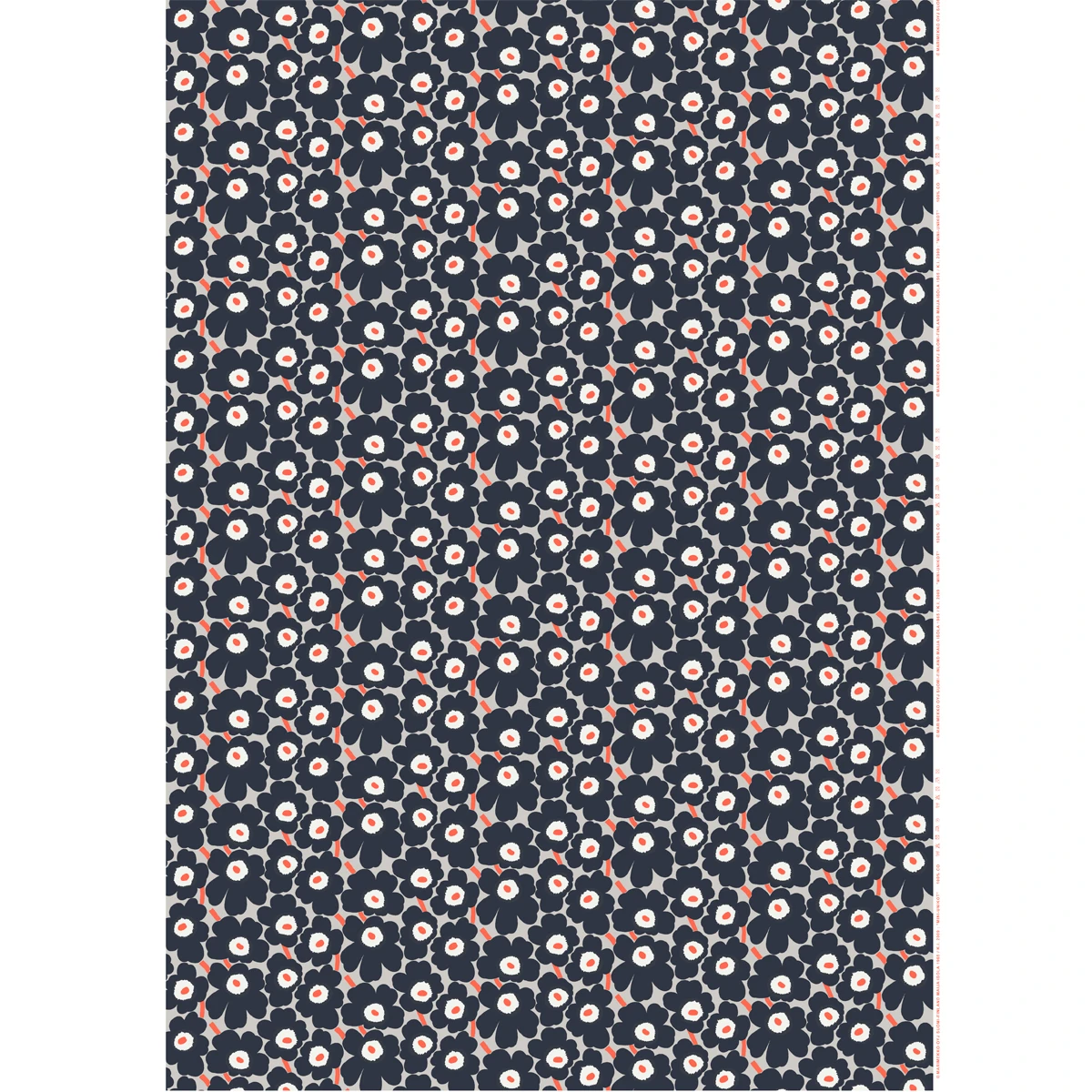 Unikko is perhaps the most iconic Marimekko pattern, and the Marimekko Mini-Unikko Grey / Coral Cotton Fabric will make a timeless addition to your home or wardrobe. The 1964 poppies are updated in a dark grey on light grey colorway with coral and white accents, in a mini scale. The heavyweight cotton fabric is machine washable, so it is easy to sew and easy to keep looking new throughout years of daily use. Create a perfectly tailored tunic, an all-season tablecloth, or a custom beadspread.