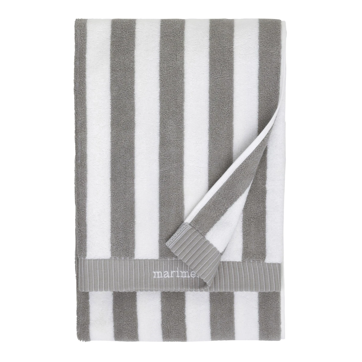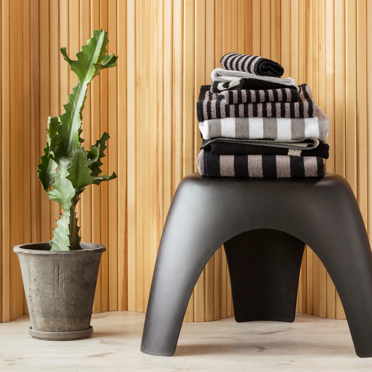 The bold stripes of Maija Isola’s Nimikko pattern stretch across the Marimekko Nimikko Grey/White Bath Towel. Lengthy and fluffy, the 100% cotton terry towel features strong, reinforced ribbing on the ends and is highly absorbent. Pop a few of these plush beauties in the linen closet for a splash of print and enjoy their luxurious softness after a bath or shower. The towel can be mixed and matched with the same or other colorways of the Nimikko and Ujo bath collection to create a unique yet cohesive set that fits your décor style and lifestyle.