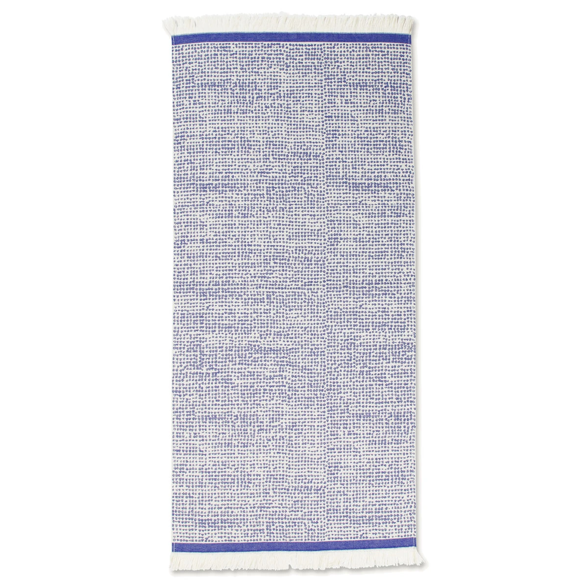 Also called Hammam towels, Turkish towels are much lighter in weight and faster drying than standard bath towels but even more absorbent and durable. Weighing only a third of what typical terry towels would, they are easy to store and transport. This makes this towel great for taking to the pool, beach, or even a picnic. The beautiful, fringed textile art can also be used as a tablecloth, yoga mat cover, or summer blankets. The flat weave, as opposed to the conventional loop/pile construction, also makes them less likely to trap allergens. The 100% cotton is machine washable, and it will only become softer with each wash. Carina Seth Andersson’s Orkanen (Hurricane) pattern depicts the disorder such storms cause with a sea of blue dots.