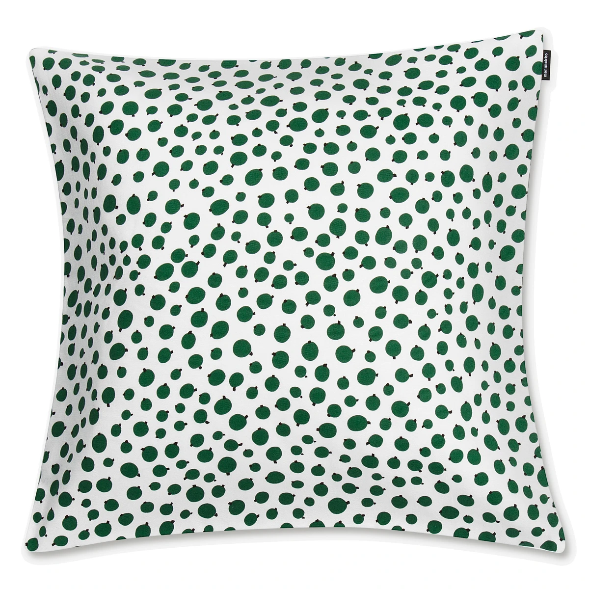 Winterberries bring the colorful cheer of summer to the colder, yet festive season. From afar this pillow may look to be covered with polka dots, but snuggle up close to see the black stems on the juicy green berries. This simple and small-scale pattern by Maija Louekari is easily mixed and match with other prints on a sofa, especially Pakanen. The 100% cotton cushion cover is easily removed from an insert for machine washing via a discreet size zipper.