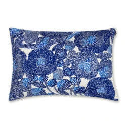 Wintry winds have picked up frozen flowers in this pattern called Hyhmä (Frost). Designer Aino-Maija Metsola used watercolors to create the beautiful blossoms in shades of icy blue, peachy orange, and soft red on a deep navy backdrop. Printed in Finland on 100% heavyweight acrylic-coated cotton, the textile can be transformed into a tablecloth, table runner, placemats, and more.