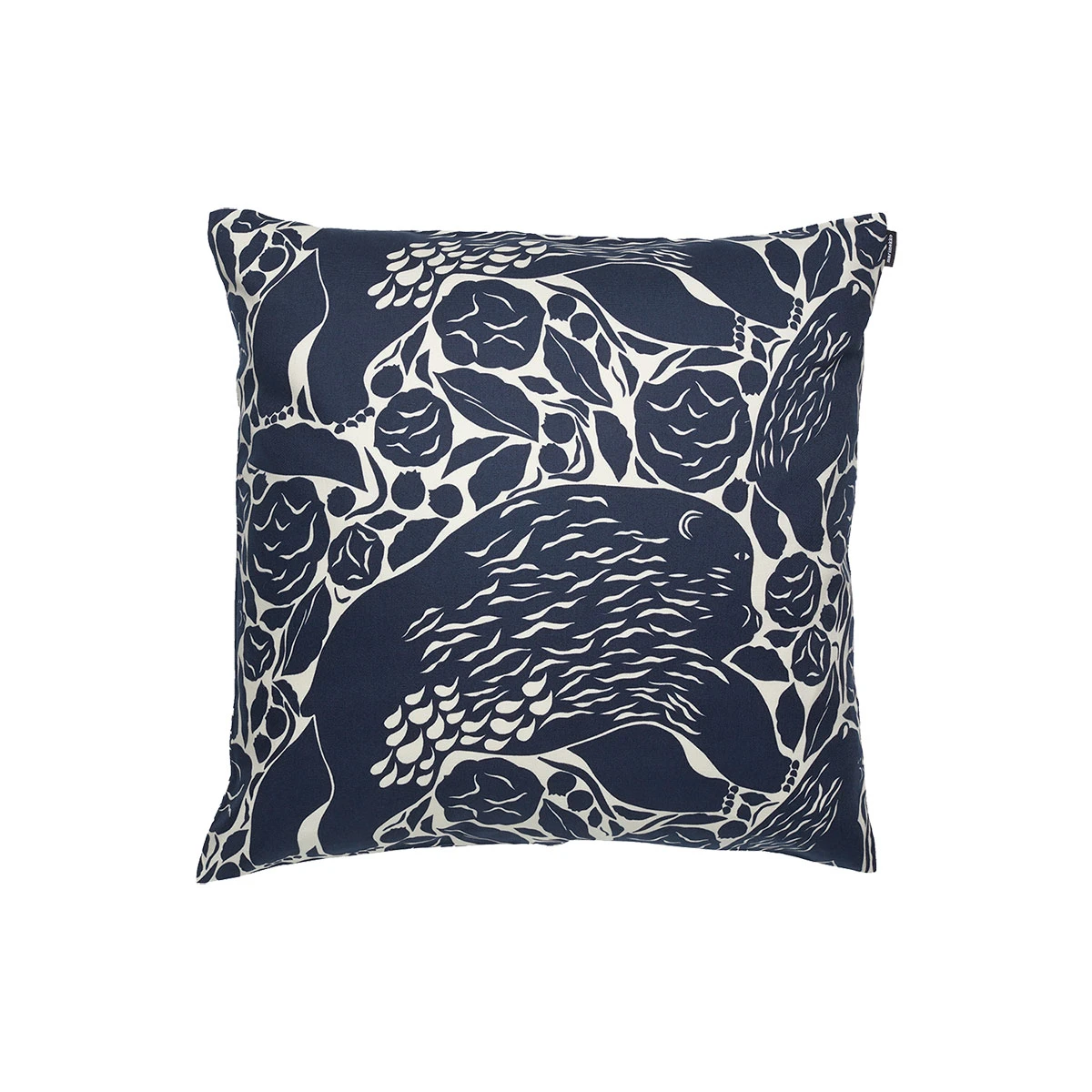 The Pieni Karhuemo (Mother Bear) pattern designed by Aino-Maija consists of flowers, leaves, and a mother bear with its cub. The pattern is printed in Helsinki onto cotton panama, perfect for your throw pillow. In this pattern, you can seed the ground rumbling under the galloping mother bear, while the baby has reared on its hind legs to observe the land. The cover has a zipper along one side that allows for easy removal. These cushion covers are sewn with whole width fabric, therefore each cushion covers appearance may vary slightly. Each item is unique to one another.