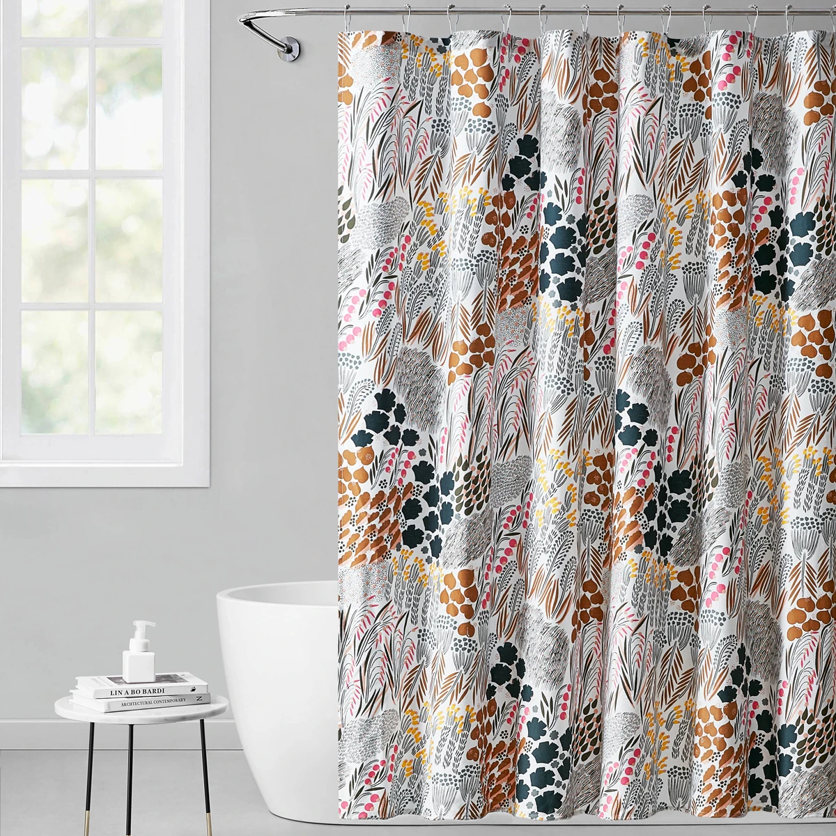 - Shower curtain liner recommended. Liner and hooks not included.