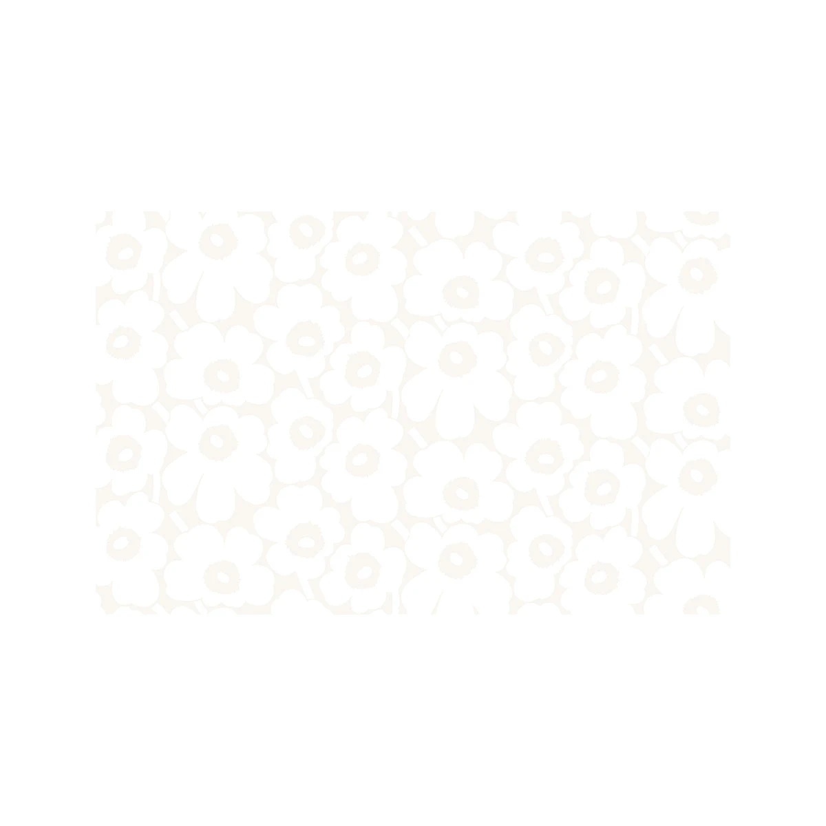 Maija Isola’s timeless Unikko (poppy) pattern graces this 100% cotton fabric in an off white/white colorway, a perfect accent anywhere it goes. With this classic print and its neutral colors, your next home decor or fashion project gets all the more lively. This Marimekko Unikko fabric is made in Finland and machine washable when needed.