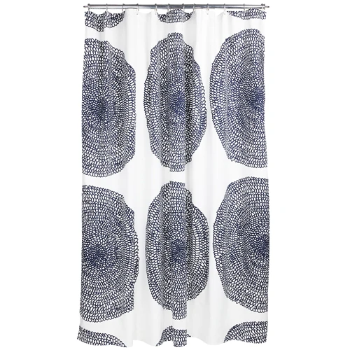A mod design with a nautical nod, the Marimekko Pippurikerä Navy Shower Curtain uses a navy blue circular design to adorn the crisp white background. Finnish for “pepperball”, the Pippurikerä pattern was designed in 1963 by Annika Rimala at the height of the mod era. Made from thick 100% cotton, the high quality shower curtain keeps wetness inside the shower while displaying high-design on the outside.