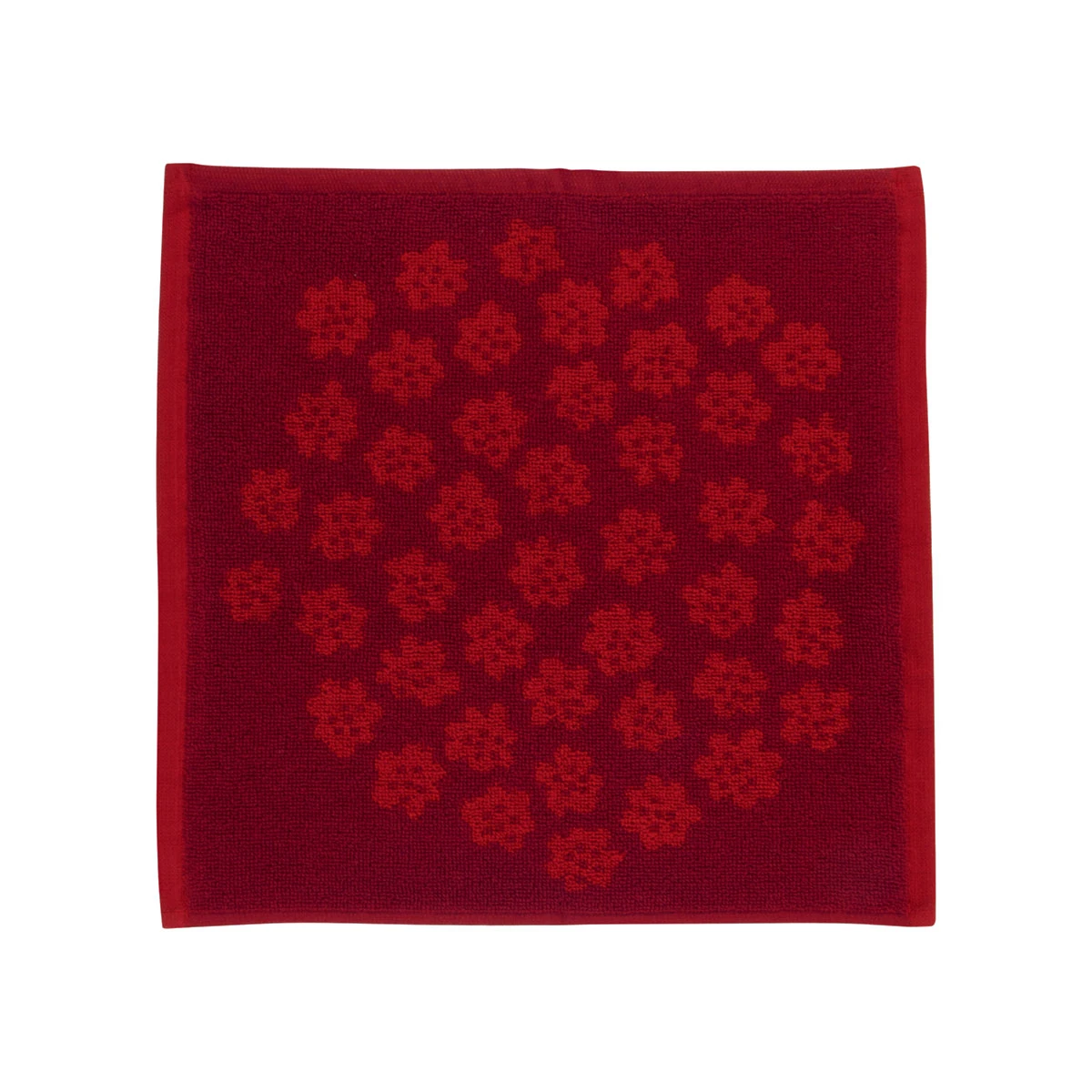 Warm, rich reds are an inviting addition to your bath during the holiday season and beyond. A cranberry backdrop allows for the clusters of flowers on Annika Rimala’s vintage Puketti (Bouquet) pattern to subtly show, and the colorway is reversed on the opposite side. Made from 100% cotton terry, the washcloth is lightweight to be fast-drying yet still soft and absorbent.