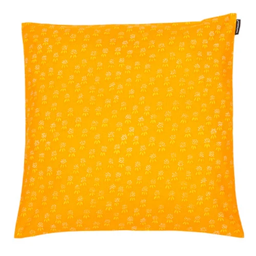 A summery shade and pattern lend to a bright, yet charming look to the Marimekko Rahka Sherbet Orange Throw Pillow. Your sofa or chairs will pop with this Rahka patterned pillow, designed by Fujiwo Ishimoto. A darling montage of small, stamp-like pineapples composed of white dots and yellow crowns echo throughout a sherbet orange background. A slit on the back of the cotton pillow cover gives you easy access to the pillow cushion. Instantly transform almost any room for summer with the Marimekko Rahka throw pillow.