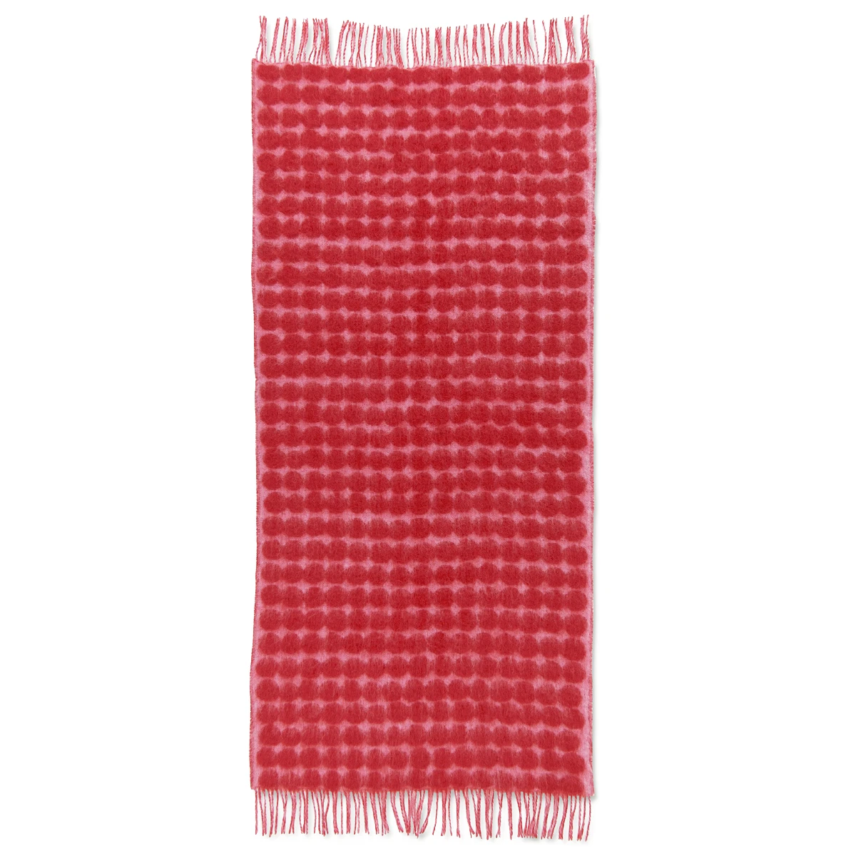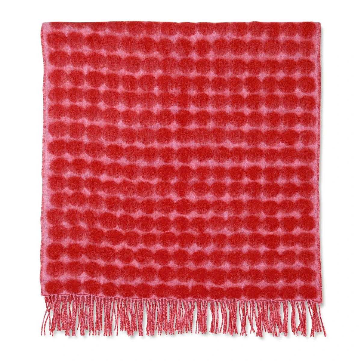 A night spent in snuggling up with this Marimekko blanket will be your favorite way to unwind and relax this season. Made from equal parts wool and mohair, it will keep you warm without overheating next to the fire thanks to its loose weave. In use or when draped in display across a sofa back, all with admire Maija Loeukari’s famous Räsymatto pattern in a striking combination of pink and red. Fringed edges give it that cozy chic look no matter how it’s folded.
