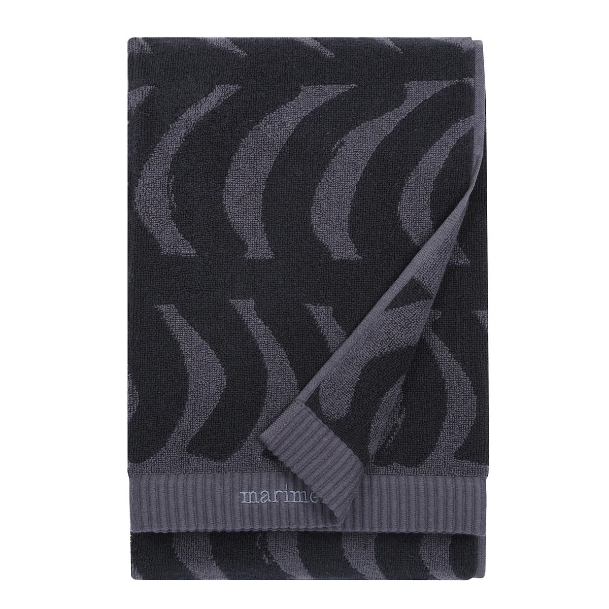 The Marimekko Rautasänky Bath Towel is contemporary, but rooted in tradition. Maija Isola’s Rautasänky print, inspired by old-fashioned iron beds, takes on an organic beauty in broad strokes of grey on black. Plush and lengthy, the 100% cotton terry towel features strong, reinforced ribbing on the ends and is highly absorbent. Keep several of these soft beauties tucked in the linen closet so everyone living or visiting your home can enjoy their luxurious softness after a bath or shower.
