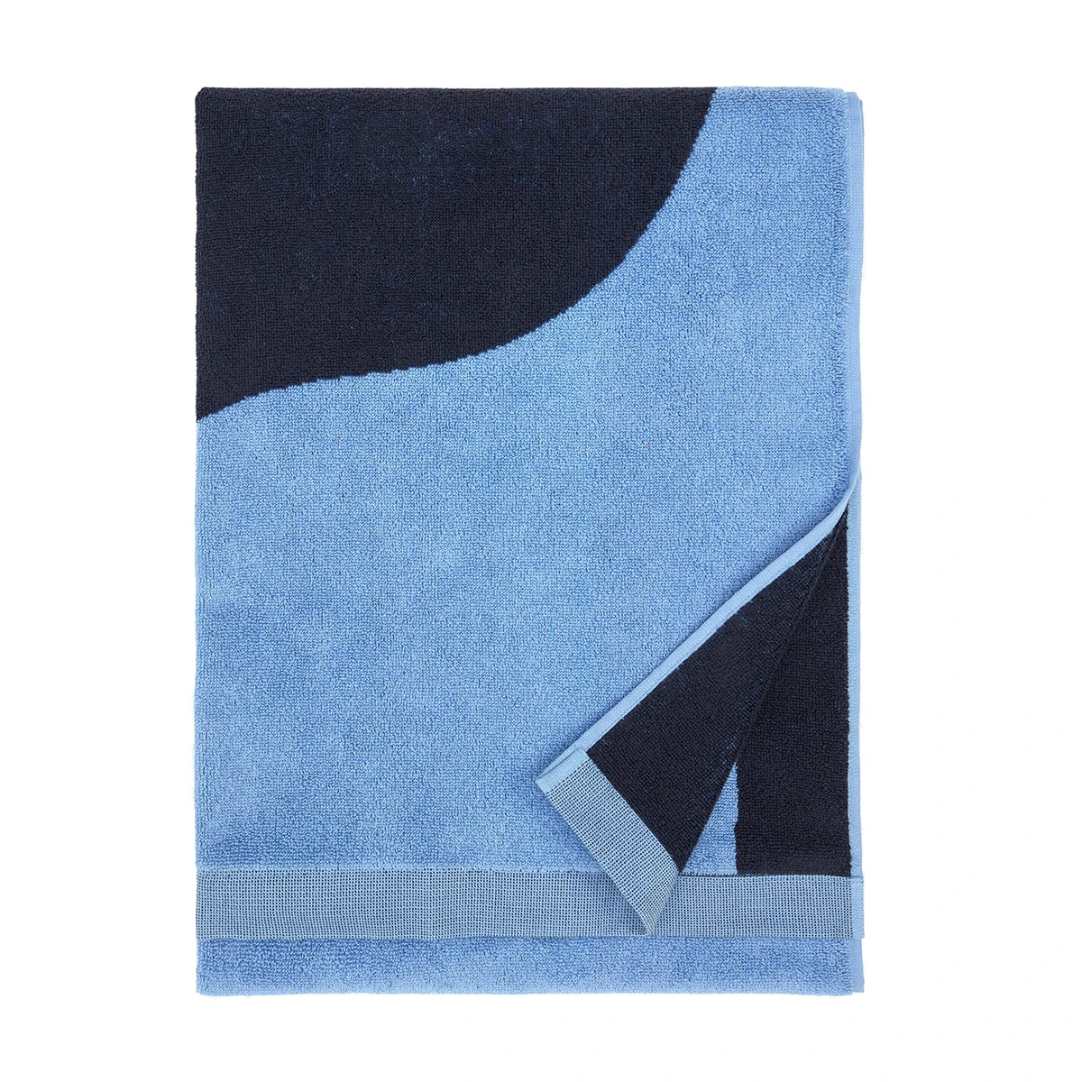 Calming blue hues are perfect for the bath. This Marimekko towel features the 1964 Seireeni (Siren) pattern by Maija Isola, which feels both retro and timelessly modern in its clean, curving lines. A river of dark blue flows down the center of an icy blue background, with the pattern colors in reverse on the other side.
