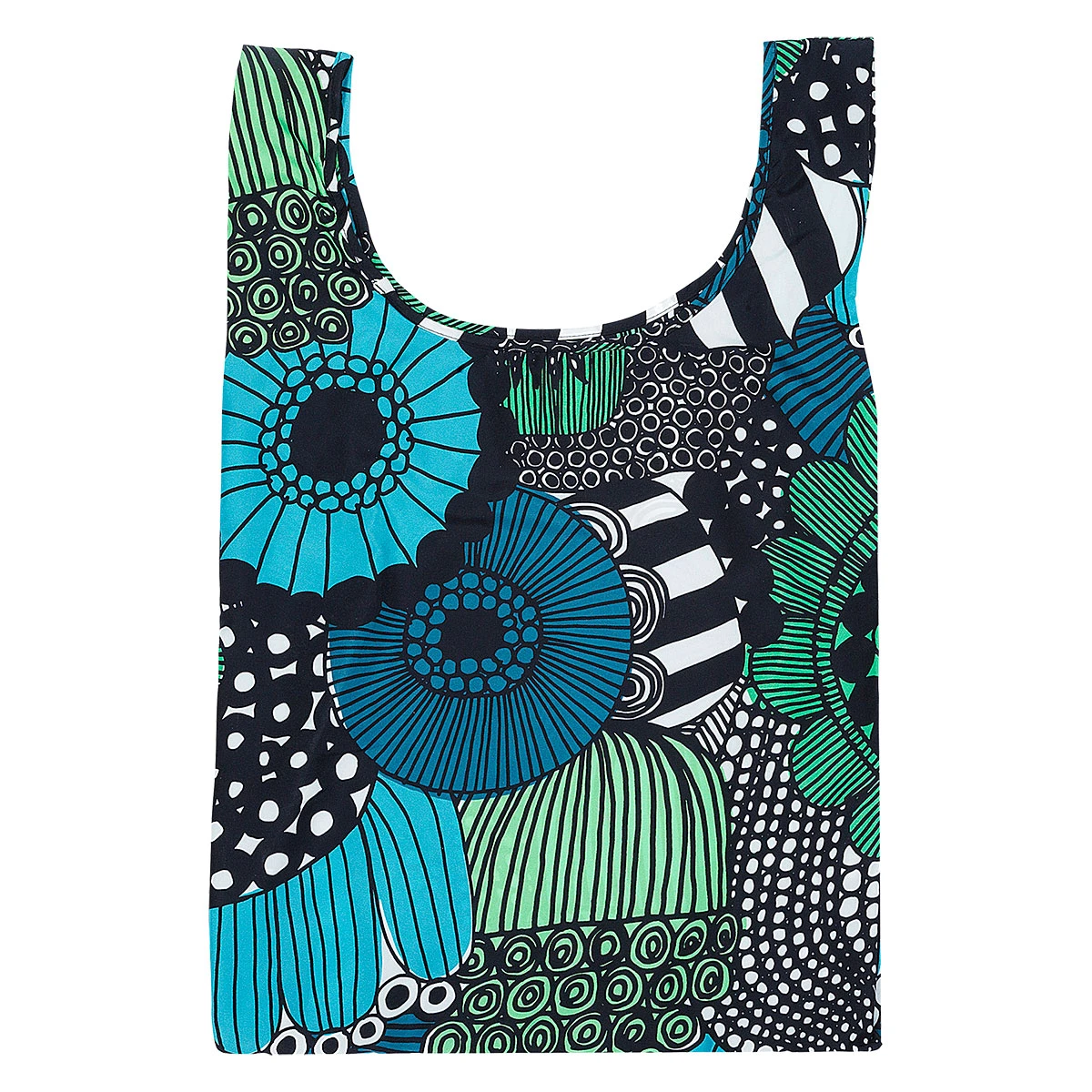 The light Smartbag has the Siirtolapuutarha pattern. The foldable shopping bag fits into a small pocket on the inside of the bag, which makes it a good accessory for on-the-go earrands. Siirtolapuutarha (City Garden) is a brilliant line drawing which tells a tale of a journey from a bustling city to an allotment garden overflowing with flowers and vegetables. The bursts of lime green and bright turquoise make this bag a statement piece wherever you may go.