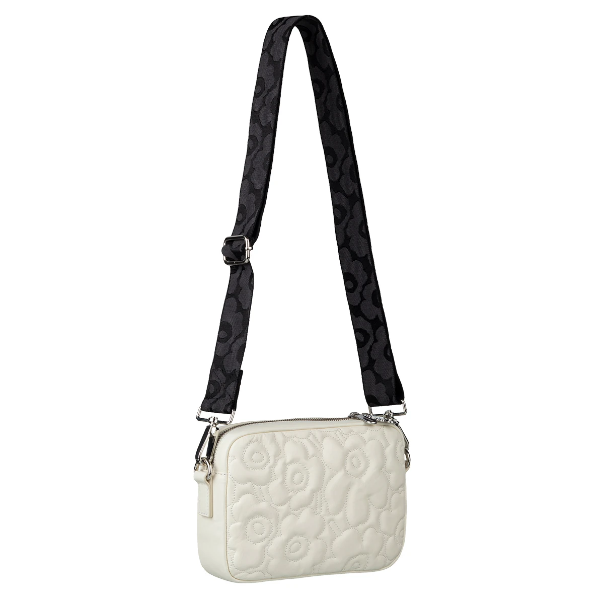 Show off your love of Unikko with the Soft Gratha shoulder bag by Marimekko, made of padded leather and decorated with Maija Isola’s famous poppies in the quilted Unikko pattern. The Unikko pattern doesn’t stop there, however, as the bag has an adjustable and detachable jacquard knit Unikko pattern shoulder strap. The bag also includes an outside zipper closure, with the pull of the zipper in the shape of an Unikko charm. Open the bag even further to find an additional zipper pouch with an “Unikko 60th Anniversary” tag sewn in the interior. The celebratory bag is a constant reminder of Unikko’s milestone, and the durable leather allows you to cherish the Soft Gratha bag for years to come.