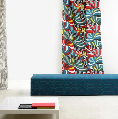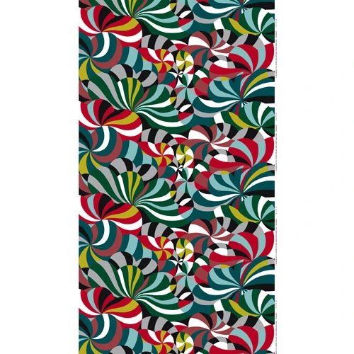 Creating eye-catching décor in your home has never been so easy. Spinning, by Marimekko features a stunning array of color that is perfect for creating wall hangings, curtains or furniture upholstery. This amazing fabric blends well with many complementary solid patterns and will splash brilliant color in your home or office.Minimum order is 3 yards. Please enter number of yards desired in the box below. This fabric is special order so please allow 3-4 weeks for delivery. Order carefully, fabric cannot be returned.