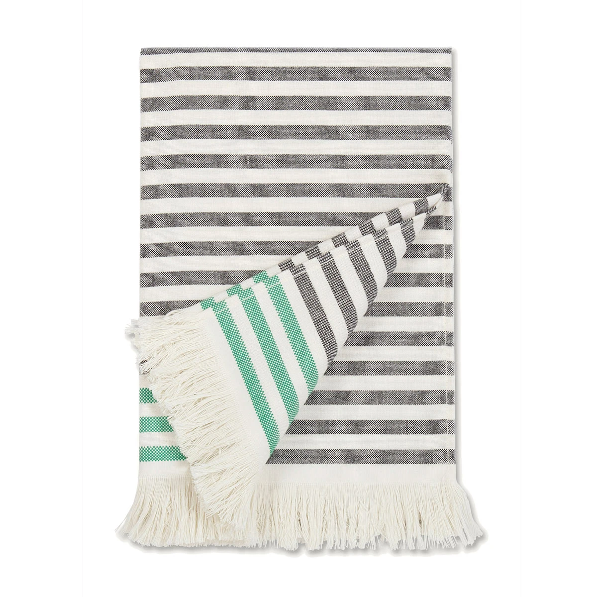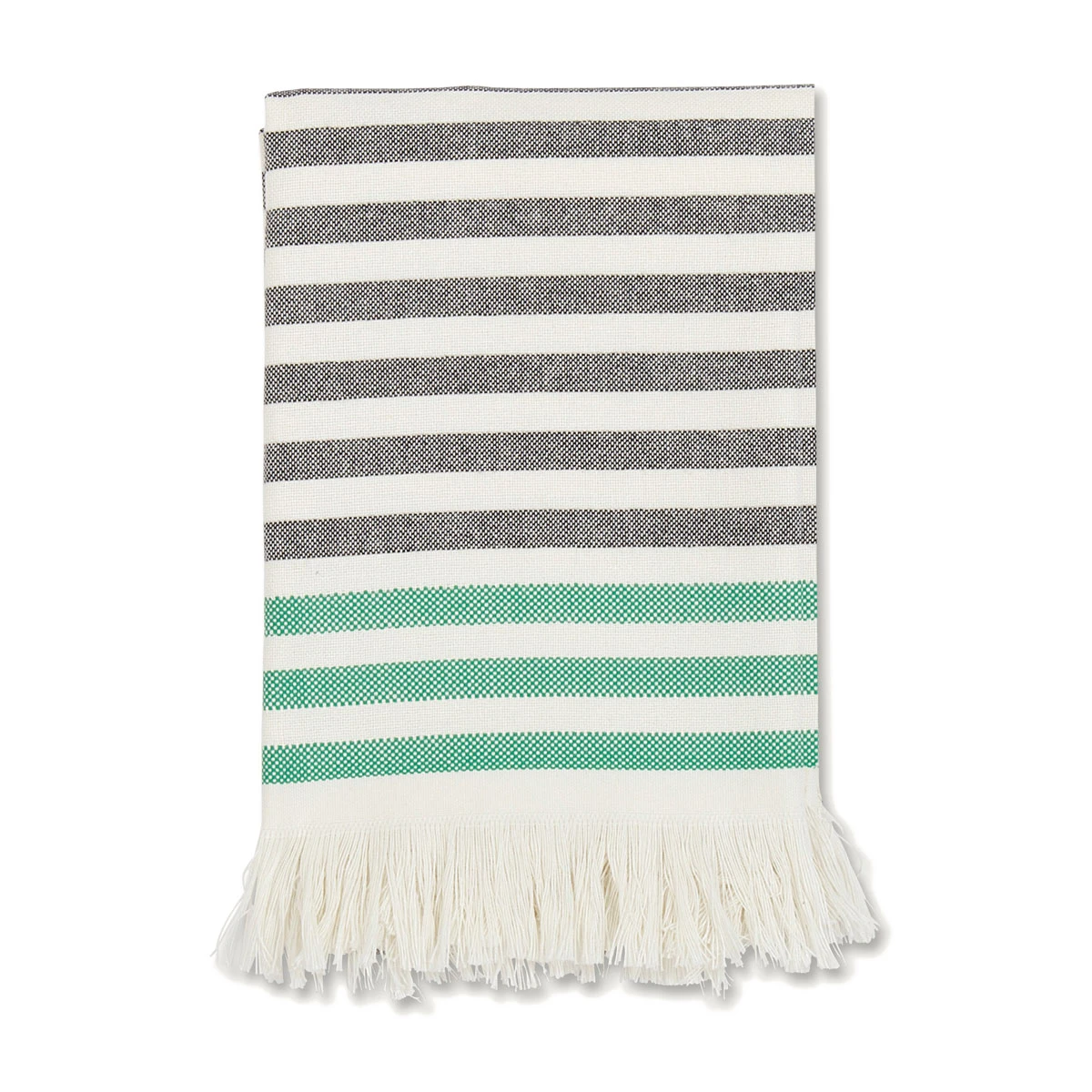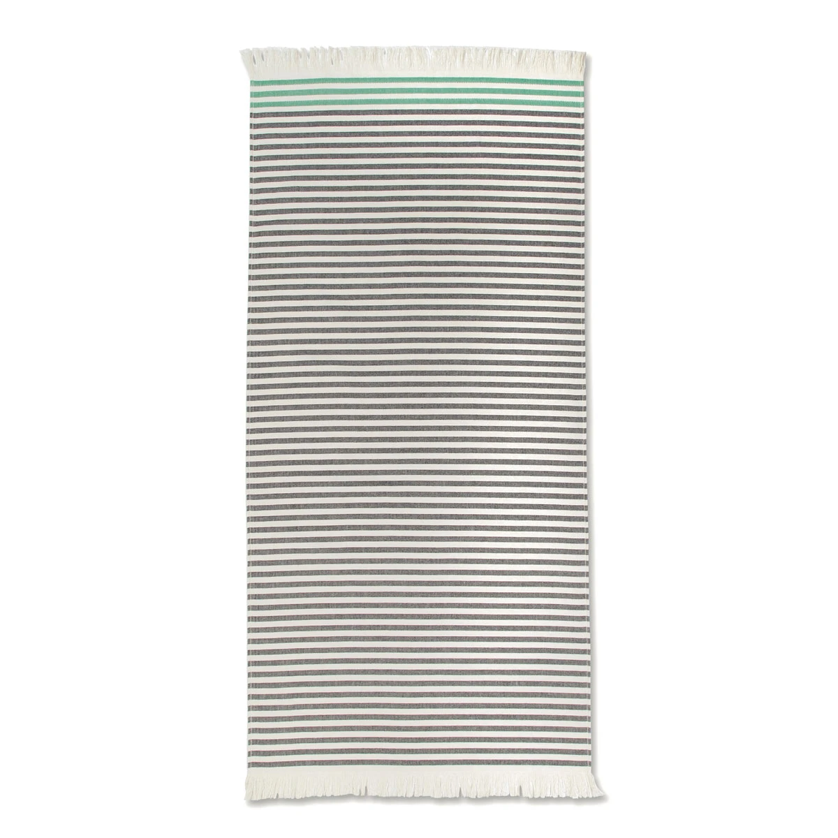 Also called Hammam towels, Turkish towels are much lighter in weight and faster drying than standard bath towels but even more absorbent and durable. Weighing only a third of what typical terry towels would, they are easy to store and transport; you could even take this to the gym. The beautiful, fringed textile art can also be worn as a scarf. The flat weave, as opposed to the conventional loop/pile construction, also makes them less likely to trap allergens. The 100% cotton is machine washable, and it will only become softer with each wash. These Turkish towels celebrate the 50 year anniversary of Annika Rimala’s Tasaraita (Even Stripe) pattern. The pattern was first featured on unisex shirts, and half a century later, still serves as a symbol of equality for the Finnish brand Marimekko. Their neutral colorway of cream and black is contrasted by a pop of green, perfect for welcoming the lush life that will soon spring up. The packaging comes with a special sticker commemorating the anniversary of this pro-equality pattern.