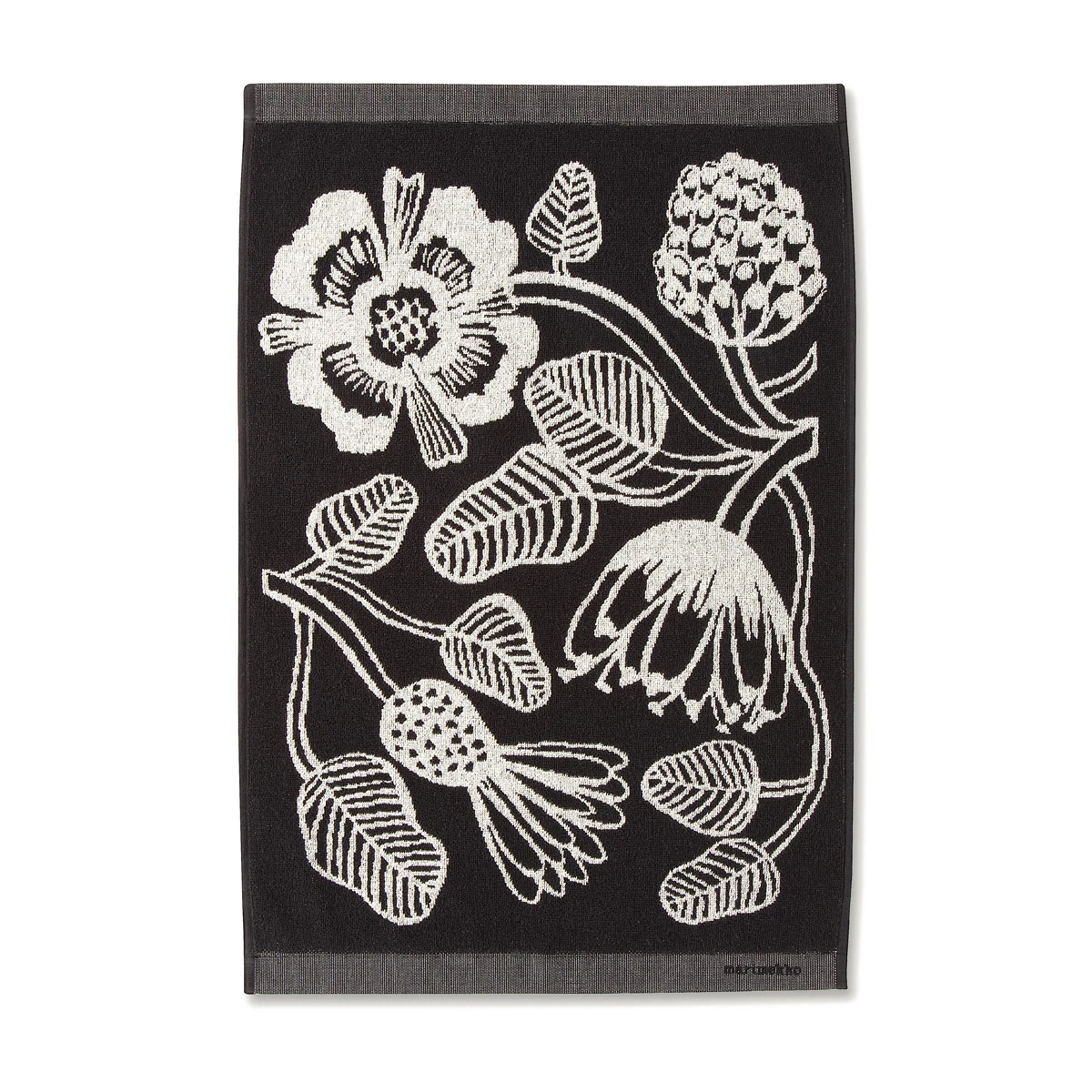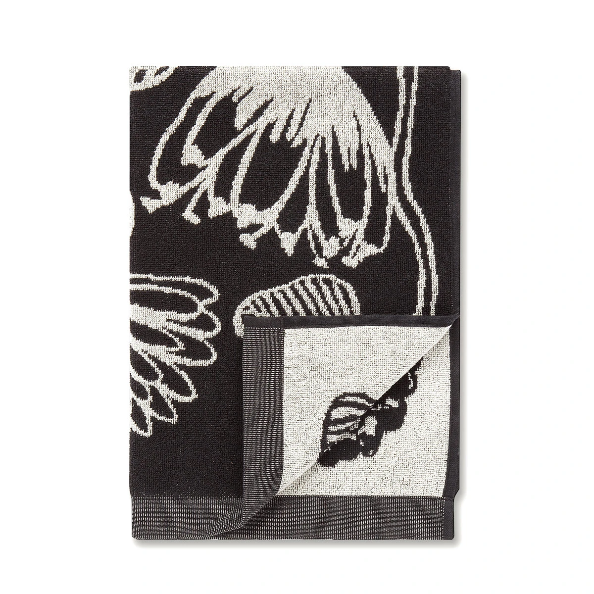 Designed by Erja Hirvi, the Tiara pattern boasts beautiful flowers in black and white to add botanical beauty to the bath. Lengthy yet lightweight and breathable, the 100% cotton hand towel features strong, reinforced ribbing on the ends.