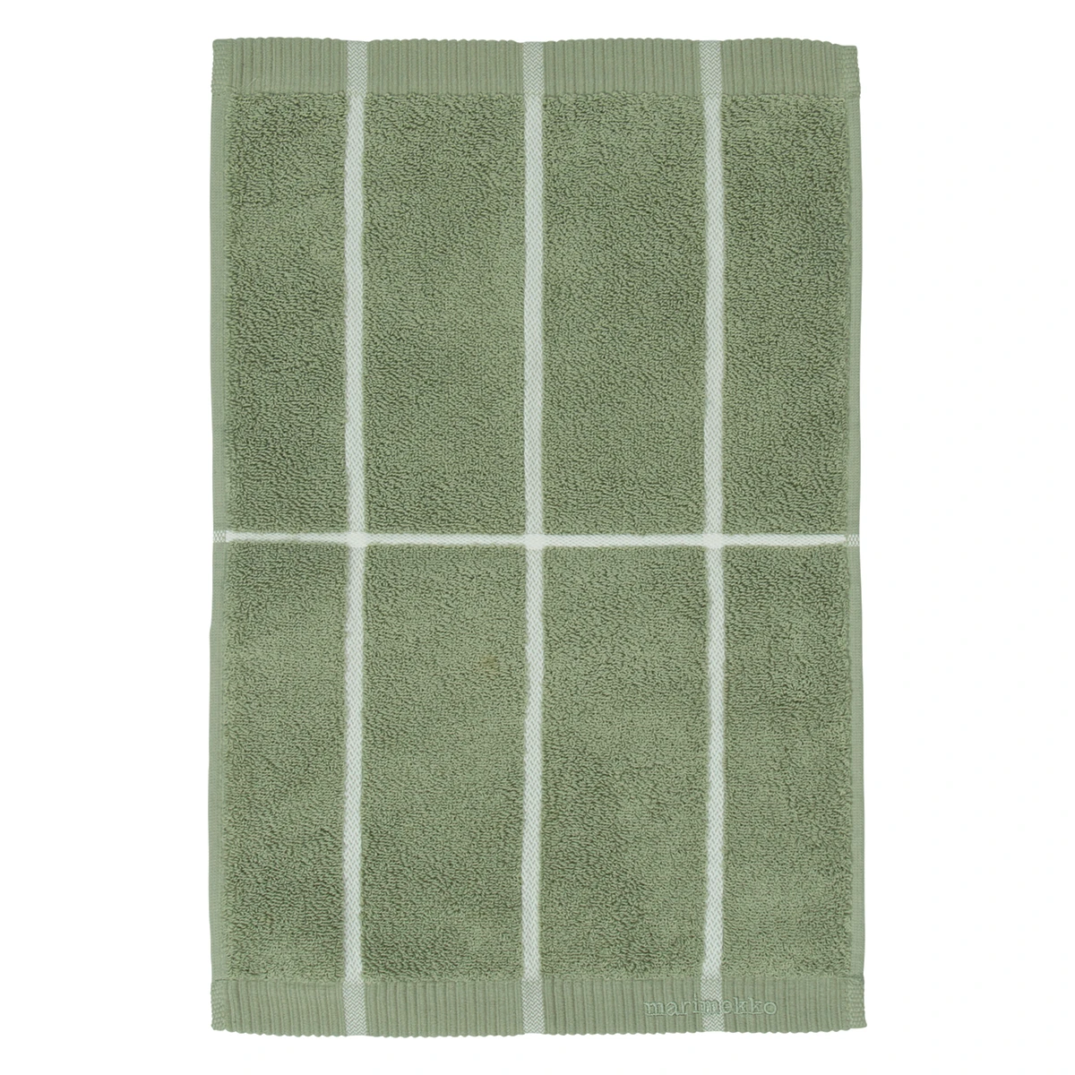 The simple white on green grid of Tiiliskivi (Brick) by Armi Ratia makes towels double as comfort essentials and modern art for your bath. Plush and lengthy, this 100% cotton terry towel features strong, reinforced ribbing on the ends and is highly absorbent. Keep several of these soft beauties tucked in the linen closet so you’ll always be prepared with a soft, pretty towel for you and your guests to refresh your face and hands.