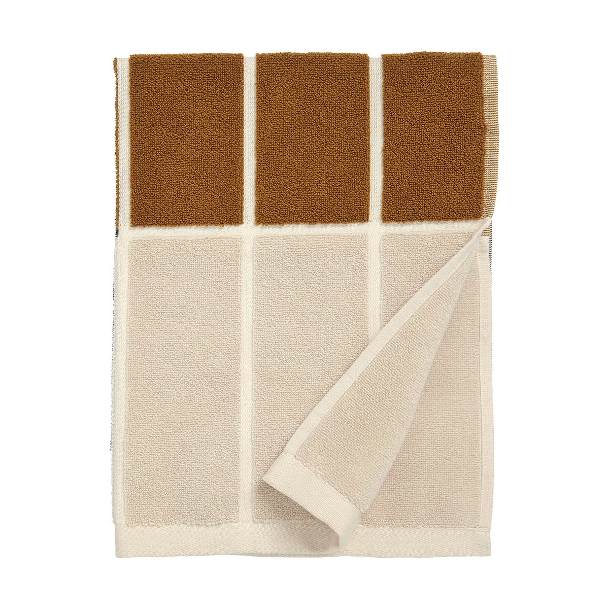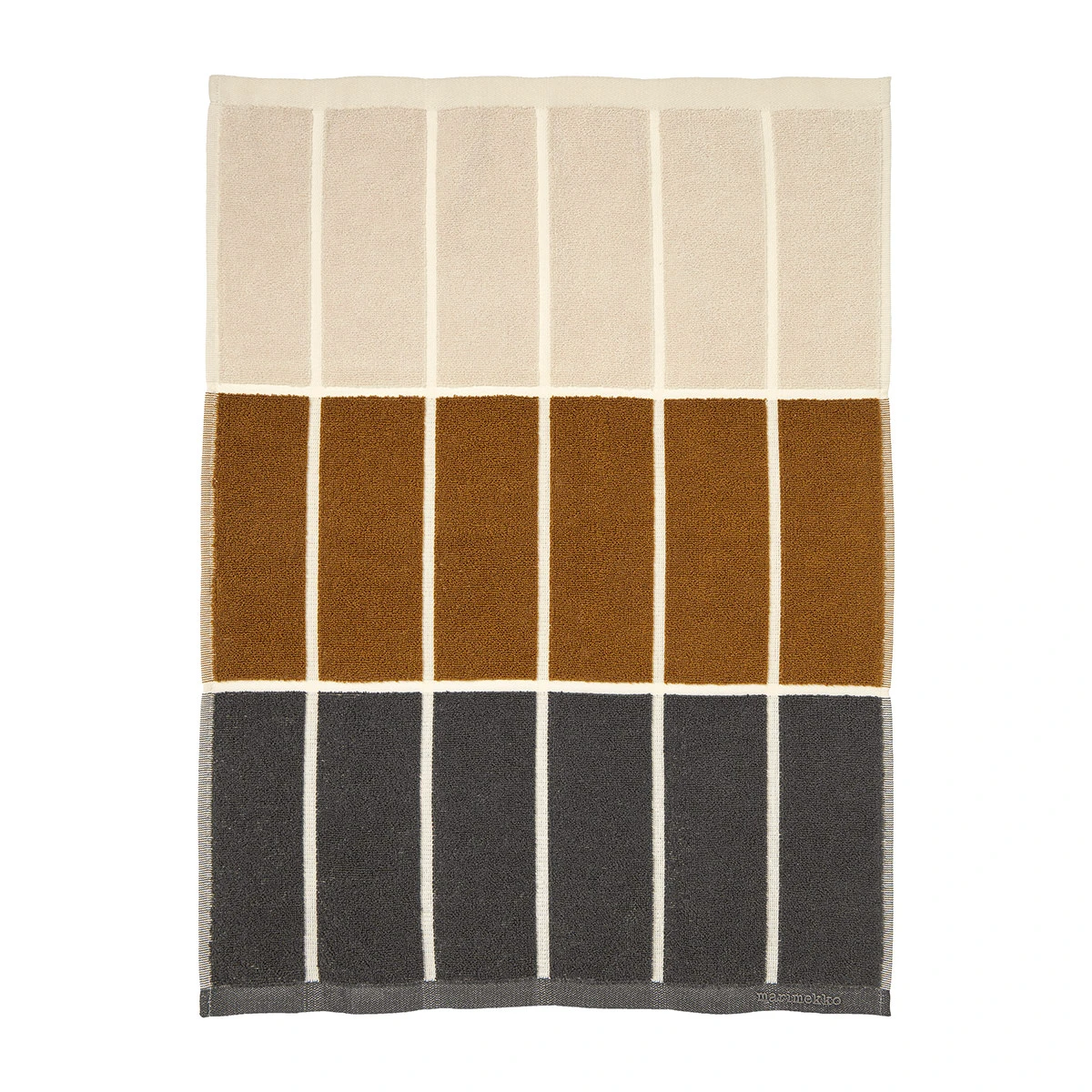 The simple grey, cinnamon, and cream white grid of Tiiliskivi (Brick) by Armi Ratia makes these hand towels double as comfort essentials and modern art for your bath. Hang the Marimekko Tiiliskivi HandTowel by its attached loop or over a bar for a stylish statement. Made from 100% cotton terry, this fluffy hand towel is super soft and highly absorbent. Mix and match Marimekko towels for a unique yet cohesive linen closet that will be the envy of all your guests.