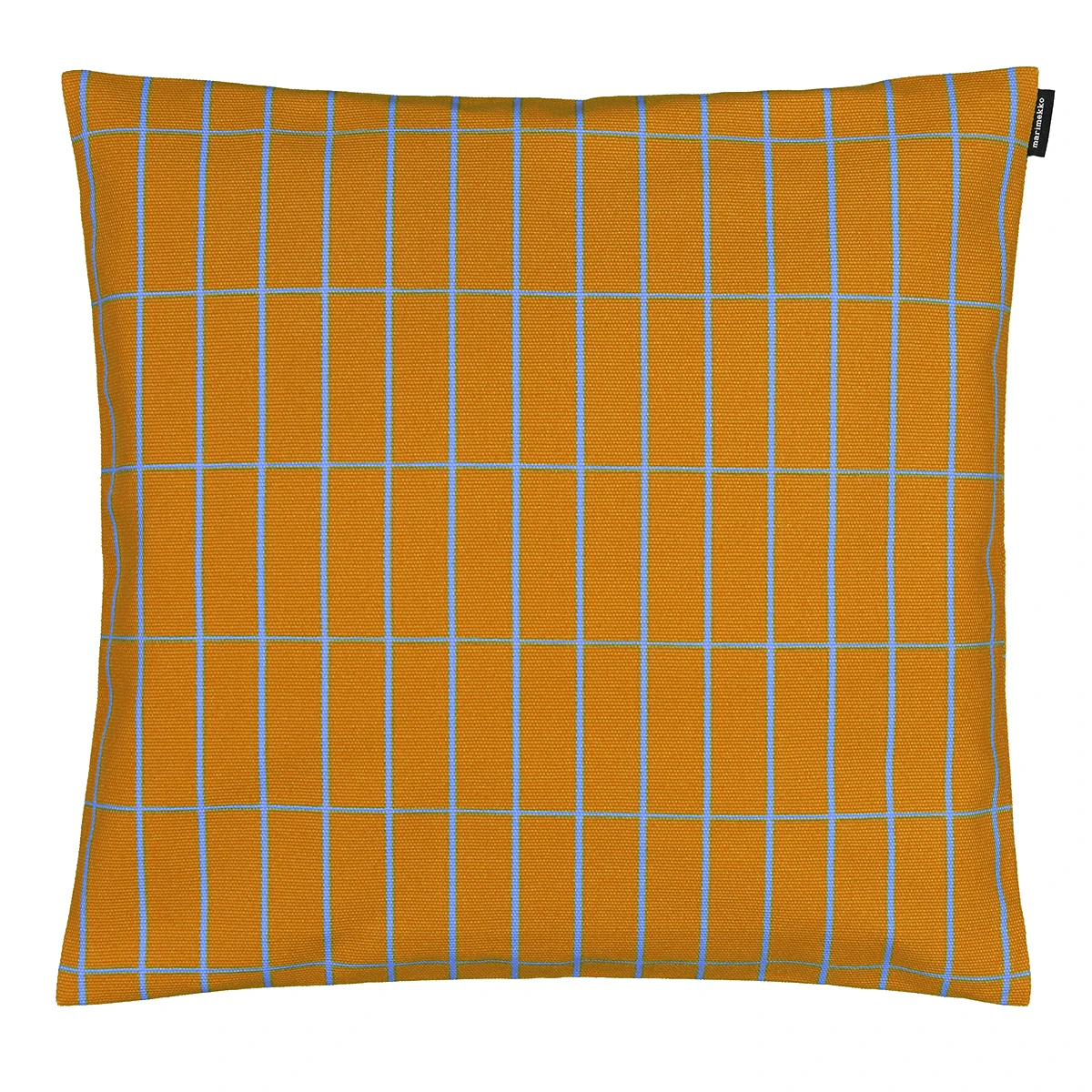 Crisp, clean, impactful; you’ll be amazed at the statement just one of the Marimekko Tiiliskivi Throw Pillows will make when propped up on your favorite sitting nook. A blue grid emerges from a gold backdrop on heavyweight 100% cotton. Machine washable, the cushion cover is easily removed from any insert to freshen up in the wash.