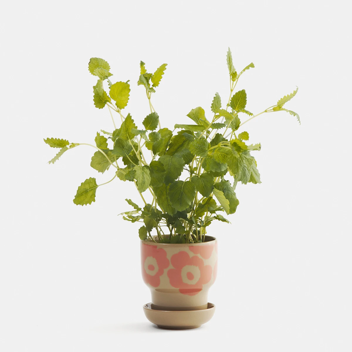 This terra colored flower pot brings double the blooms this season: your own seedlings plus Maija Isola’s iconic Unikko (poppy) pattern in a peachy pink colorway. The size of the Marimekko pot will be ideal for herbs and small sprigs, and the included saucer allows you to drain your plant after watering to keep them happy and healthy. The round and organic shape, apart of the Oiva collection and designed by Sami Ruotsalainen, will look stunning atop a coffee table, lining a window sill or on a decorative shelf.