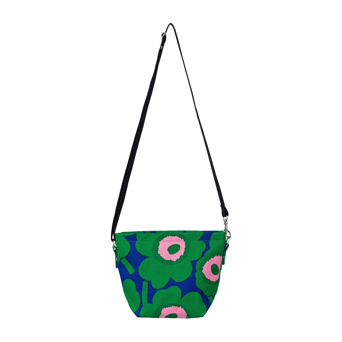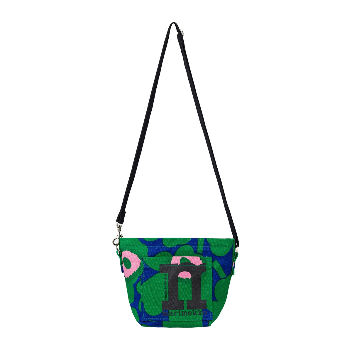 Maija Isola’s classic poppies are blooming in a fresh new colorway atop this Marimekko Mono Mini Crossbody Bag. The Unikko (Poppy) pattern features green florals, light pink accents and a blue backdrop, perfectly elevating any outfit with its graphic print and bold hues. The handy crossbody bag has a zipper closure, a convenient front open pocket and adjustable shoulder strap, making for an easy, on-the-go accessory. The thick and durable 100% cotton material ensures a reliable bag for your everyday essentials.
