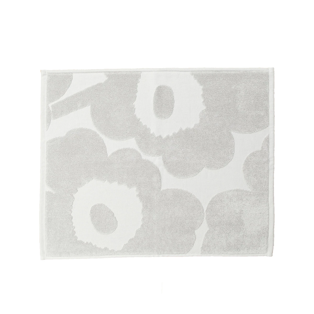 The Marimekko Unikko Grey Floor Towel keeps flowers at your feet anywhere you go. Scaled-down and lighter weight than a bath mat, it dries out quickly and easily moves from room to room. Use it to reduce slips in your sauna, to keep feet warm while standing at the sink, to catch drips coming out of a shower, and to wipe little paws or feet running in and out of a mudroom. The terry cotton blooms are absorbent for drips and messes, and the towel is easy to toss in the washing machine to keep clean and fresh.