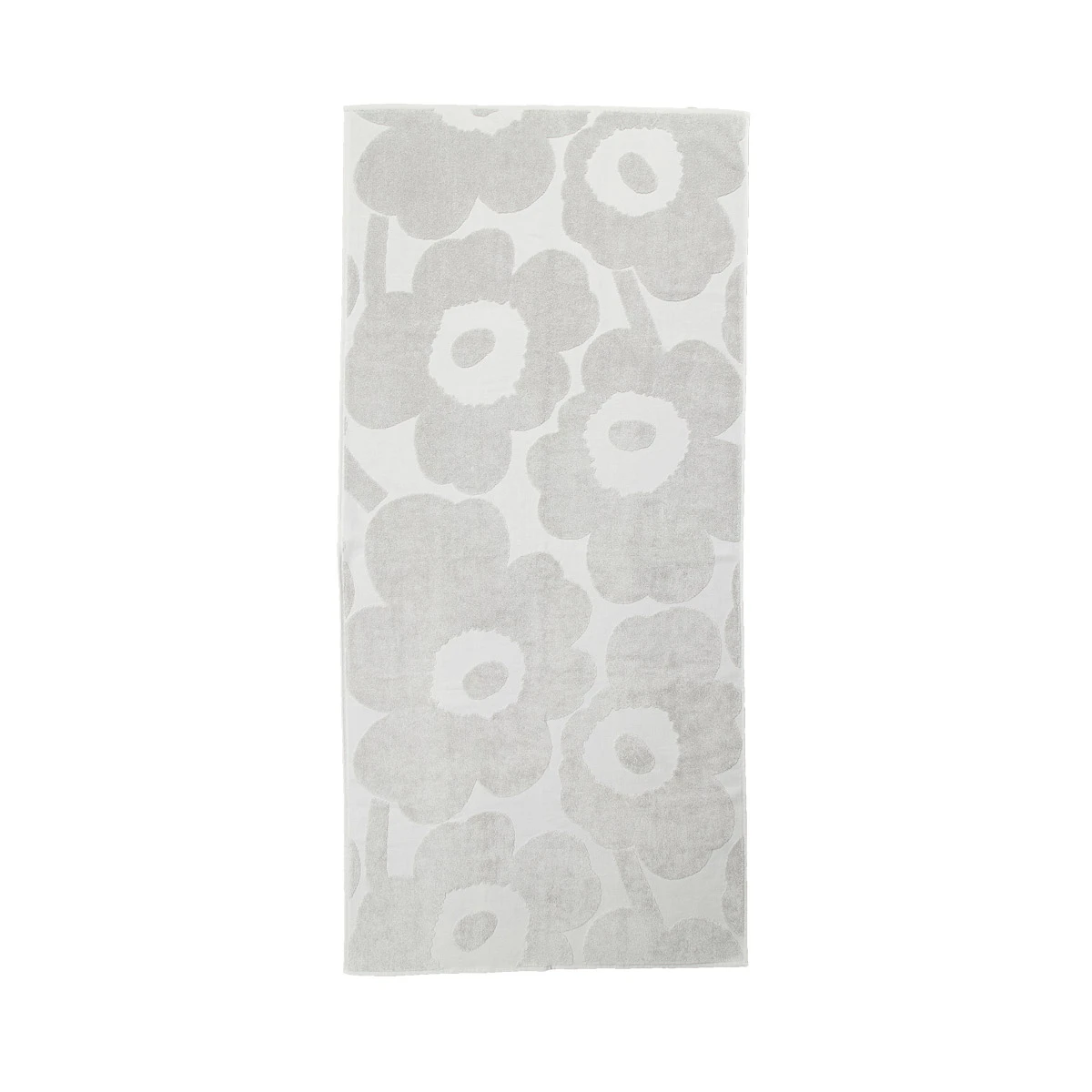 Express your love for Maija Isola’s poppy print in a way that feels soft and subtle. The 1964 Unikko pattern on this grey guest towel is revealed purely through the embossment of the petals, stems and centers. This variation in texture does not affect the plush, durable and absorbent quality of the 100% cotton terry composition. A nod to prints but a true solid, this hybrid could be beautifully combined with other Marimekko bath towels, such as Marimekko Nimikko and Ujo, for a unique yet cohesive linen closet.