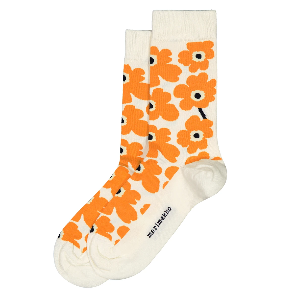 New socks are one of life’s simple joys – especially in a new colorway of Maija Isola’s iconic 1964 Unikko pattern. The poppy print blooms in shades of saffron and navy on a soft ivory backdrop. These cotton-blend socks are just the right weight to stay warm but not get too hot, and have a slight stretch to them for the perfect fit.