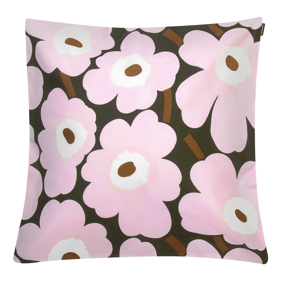 Maija Isola’s famous Unikko (Poppy) print is the perfect way to welcome spring in shades of lilac and brown. The background color is a dark charcoal with hints of green; it’s symbolic of the life sprouting from the bout of darkness during winter’s visit. This 100% cotton pillow cover can be easily removed from an insert by a zipper to be tossed in the wash whenever it needs freshening up.