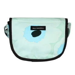 This durable shoulder bag features flowers designed by Maija Isola in 1964. Called Unikko (Poppy), it’s become the most well-known prints in Finnish history. Here in hues of mint green. blue, and black, it feels new and fresh. Two roomy interior pockets, one with a zipper closure, are perfect for your wallet, keys, phone and more. A cover flap secures the purse with a magnetic snap and features an outside zipper pocket, perfect for things you want within easiest reach.