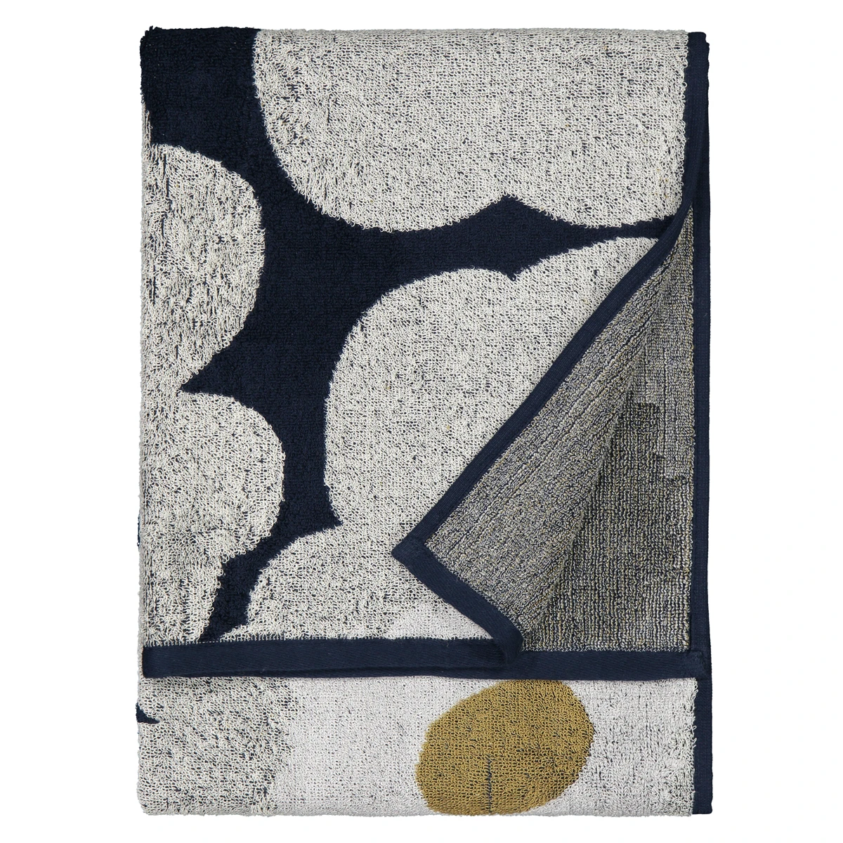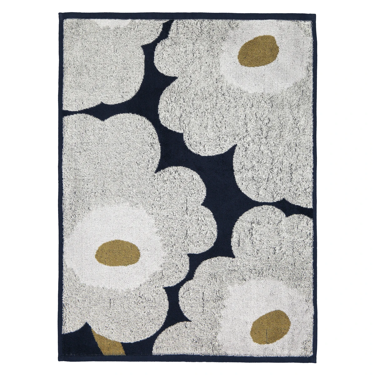 Maija Isola’s often bright pattern Unikko is still as bold in neutral and natural shades of navy, grey, white, and olive, but perfect for setting a serene scene in the bath. The 100% cotton hand towel is lightweight enough to be fast-drying but still fluffy and absorbent. Hang from the attached loop, or fold it over a towel bar for a pop of poppies to brighten your day.