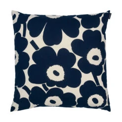 The classic Marimekko Unikko pattern, designed by Maija Isola, is here in a timeless navy and off-white throw pillow cover. This classic, beloved Marimekko pattern will add a touch of style to your decor. The elevated design of this Marimekko Unikko Navy Blue Throw Pillow discretely hides a side zipper, meaning removing the cover for cleaning is a cinch.